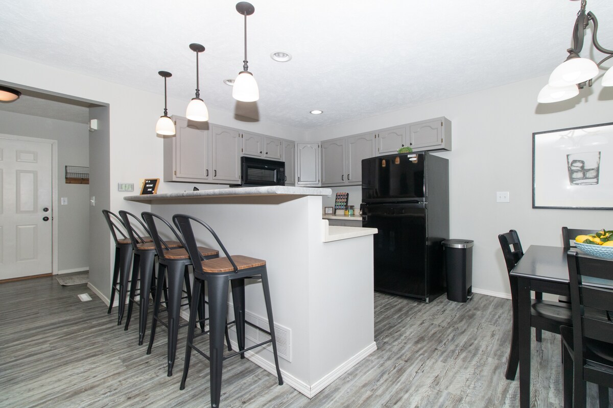 Svetlo ispunjeno i ušuškano u zrelim drvećem susedstva Mejplvud. Ovaj dom od cigle sa jednom spratom nalazi se u centru grada; u blizini su Uptown i Downtown, kampusa ISU-a i IWU-a i na manje od 10 minuta od Rivijan i državne farme. Nedavno renovirani i dizajnirani sa modernom estetikom, naši gosti dolaze da istraže Blumington/Standard, ali nam kažu da su jednako zadovoljni što provode vreme i opuštaju se na našem Modernom ranču. Novougrađeni punjač za električna vozila je dostupan tokom vašeg boravka!