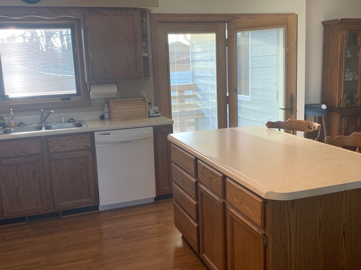 Enjoy the newly remodeled space. Very cute and spacious house. Wrap around driveway (Specific parking arrangements for Motorcycle Rally). 2 blocks from the heart of downtown Sturgis. Walking distance for great food, entertainment & seasonal events. Each bedroom has a Queen size bed. Plenty of room for an air mattress if needed. Kitchen is supplied. Shaded patio set on two sides of home, and grill available!