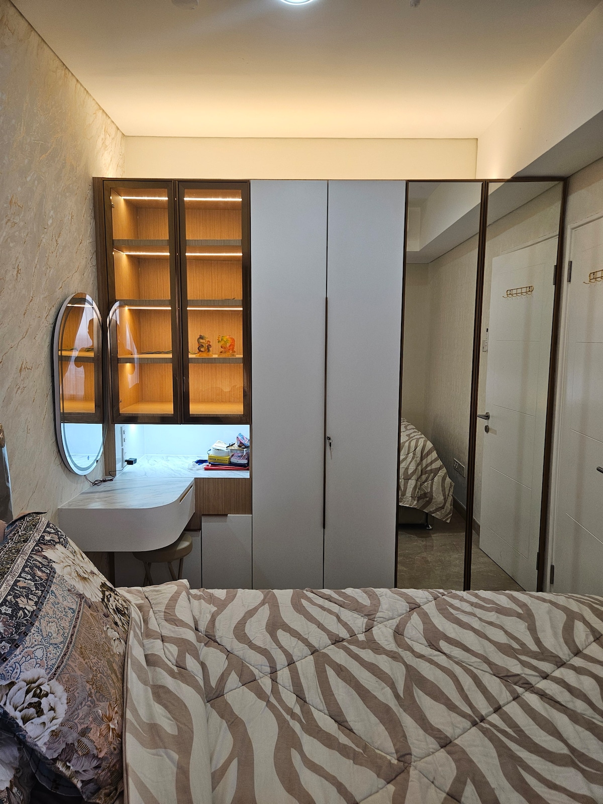Nedavno renovirani stan Podomoro Siti Deli Medan Nudi luksuzan boravak sa udobnim i domaćim dizajnom. Naći ćete očaravajući predivan pogled na grad direktno iz udobnosti vašeg prozora i balkona. Nalazi se u centru grada Medan. • Direktan pristup tržnom centru Podomoro direktno iz predvorja stana • Nasuprot hotelu JW Marriot • Ned i CP 8 minuta • Veoma lep pogled na grad • Potpuno namješten Lux • 2 jedinice Big Smart TV (sa Netflix-om, YouTube-om itd.) • Brzi Wi-Fi • Prečišćivač vazduha