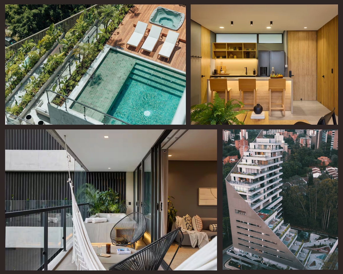 Dobro došli u vrhunski penthaus u Medelinu - gdje se luksuz susreće s uličnom umjetnošću, a pogled na grad i planine od 360° čine pozornicu za nezaboravan boravak. Smješteno na 21. spratu u El Pobladu, ovo utočište od 4.000 kvadratnih metara odvažno je počast Komuni 13, najpoznatijoj četvrti Medelina za grafite i kulturno izražavanje. Uz 9 murala s grafitima @chota_13, ova jedinstvena rezidencija se pretvara u galeriju koja živi i udiše kreativnu dušu grada.