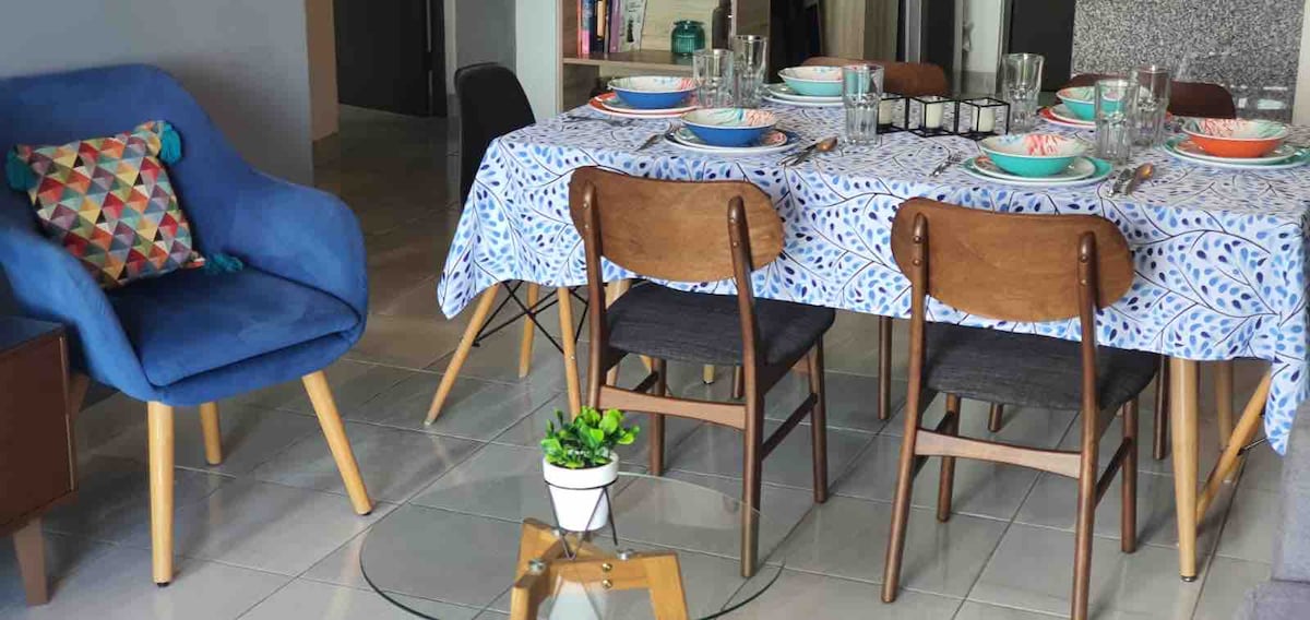 Idealan stan za porodice, grupu prijatelja za uživanje ili poslovne boravke, pogodan za kućne ljubimce, potpuno klimatizovan, sa opremljenom kuhinjom, svetlom, provetrenom, modernom, veoma dobro smeštenom (u blizini plaža i tržnih centara, na 15 minuta od WTC-a) Ima veoma veliku baštu, bazen, palapu i WC u zajedničkom prostoru zgrade.