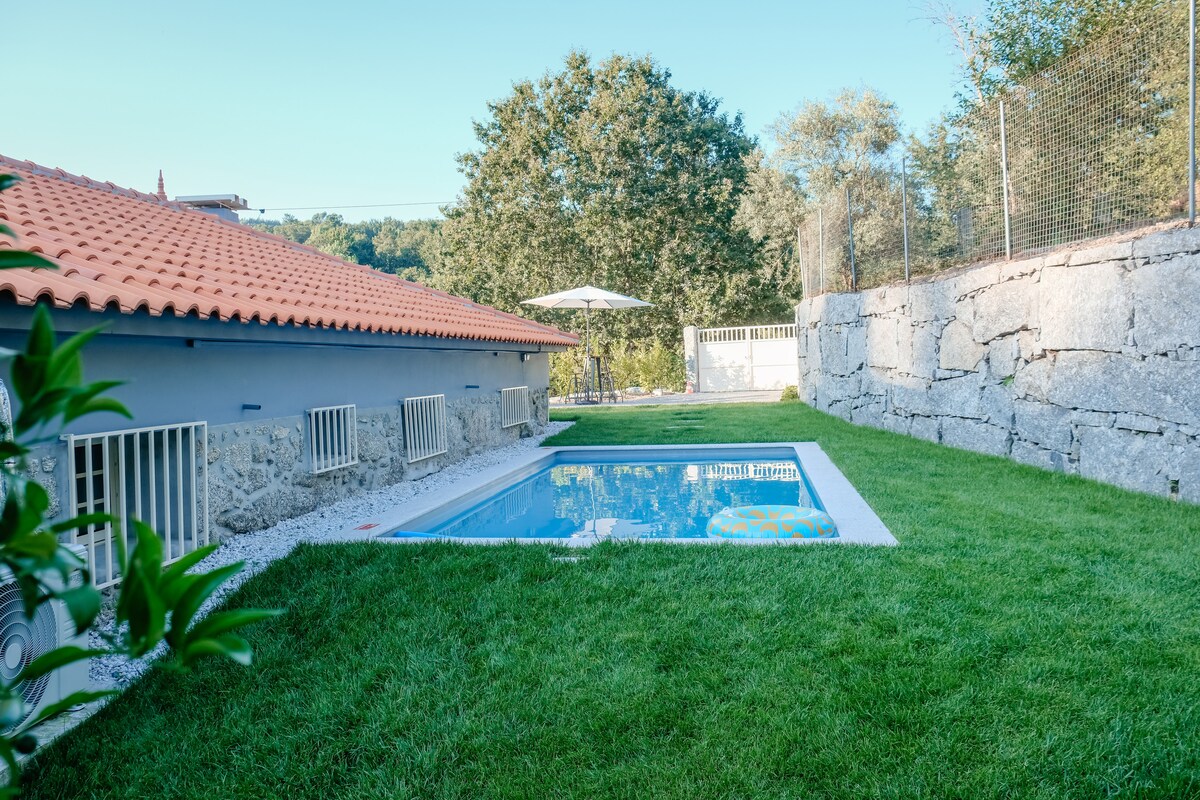 Uživajte sa porodicom u ovom fantastičnom smještaju gdje ćete pronaći savršenu ravnotežu spokoja, udobnosti i privatnosti. Ova kuća vam nudi panoramski pogled na planinu, okruženu zelenim površinama, privatnim bazenom i šarmantnom trpezarijom na otvorenom. Nalazi se 5 minuta od centra grada Fafea sa lokalnom pijacom svake srijede ujutro za dobre svježe lokalne proizvode. Nalazi se 20 minuta od Gimaraesa i ovih istorijskih i komercijalnih centara. I jezero Kveimadela Dam.