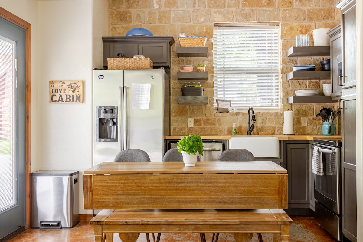 Smještaj Escape-5BR prikladan za porodice i grupe na 9 skrovitih, parkova s bazenom, hidromasažnom kadom, kaminima, gurmanskom kuhinjom, trpezarijom i spavanjem za 22. 4 bračna kreveta, bilijar, pikado, igre i još mnogo toga. Prošetajte stazama, vozite 5 minuta do Medicine Parka i Old Fort Silla. Odlično za okupljanja, ljubitelje prirode i porodičnu zabavu. Kućni ljubimci su dobrodošli bez naknade. Cijene se zasnivaju na broju gostiju. Više od 30 osoba naplaćuje se naknada za mjesto održavanja. Događaji od 30-50 $250, 50-75 $500, 75 do 125 $1,000 rent up to 80 chair ($ 2.75 ea) & 8 tables ($ 10 ea)