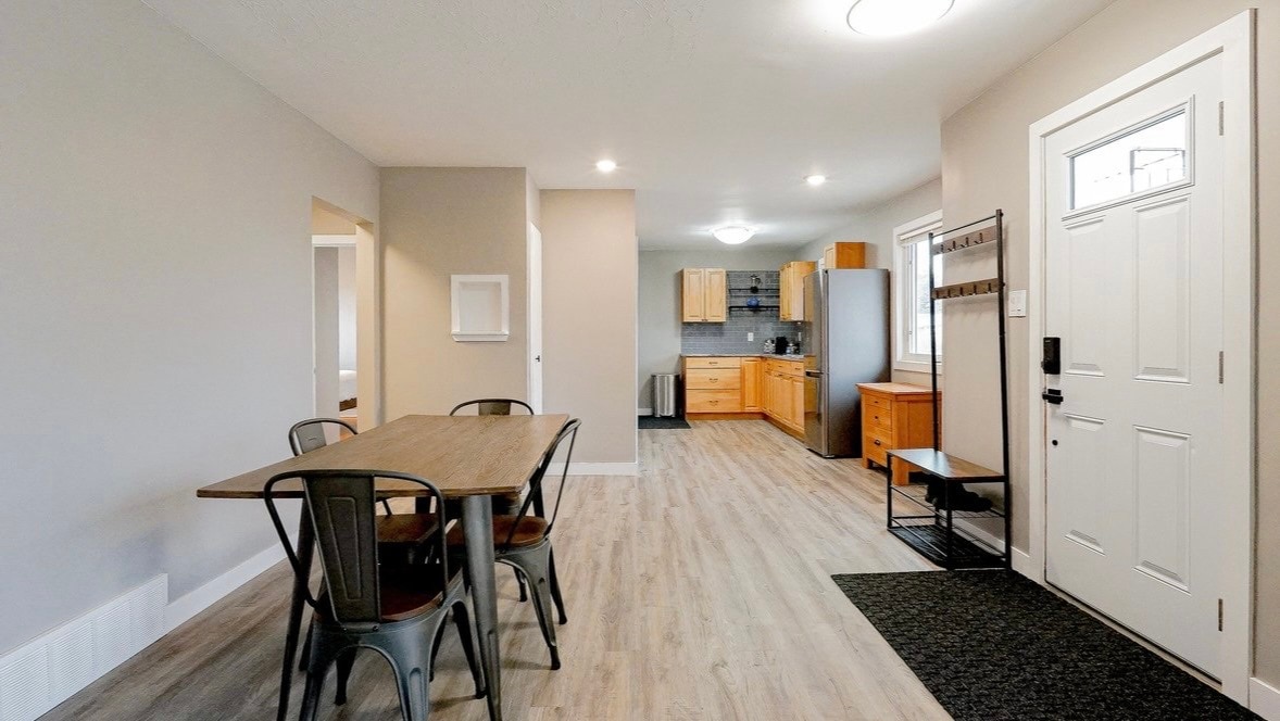Nedavno renoviran dom sa 4 spavaće sobe i 2 kupatila u severozapadnom delu Medisin Heta, osmišljen za udobnost i duže boravke. Svijetao otvoreni raspored, moderne završne obrade, potpuno opremljena kuhinja, brza Wi-Fi mreža, 2 pametna televizora i mašina za pranje i sušenje veša u apartmanu. Prostrani podrum sa drugim dnevnim boravkom i čajnom kuhinjom – savršeno za porodice i poslovne ljude. Mirna, bezbjedna lokacija u blizini prodavnica, restorana i sadržaja. Čist, elegantan i spreman za useljenje – sve što vam je potrebno za udoban duži boravak. Veliki centar za kuglanje i biciklističke staze u blizini!