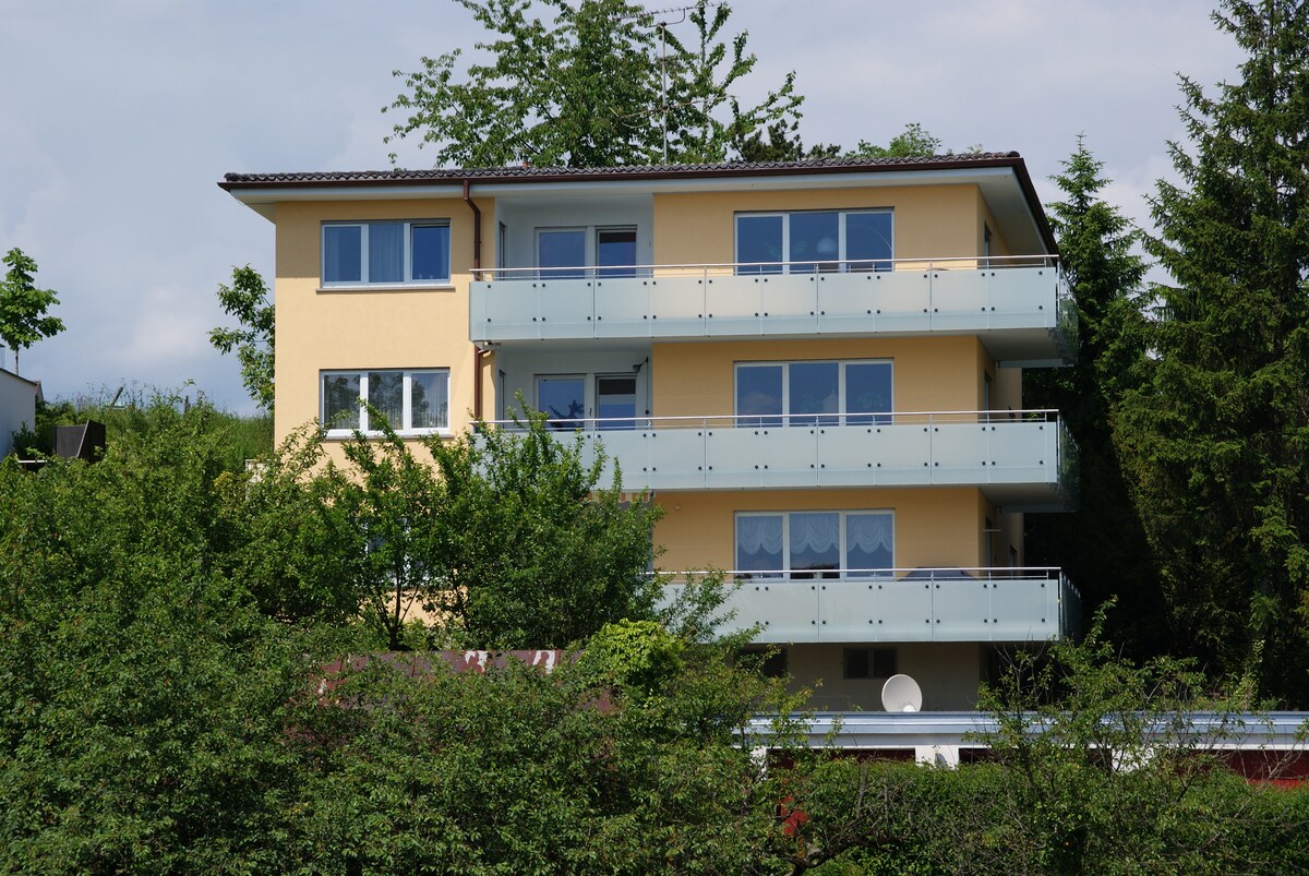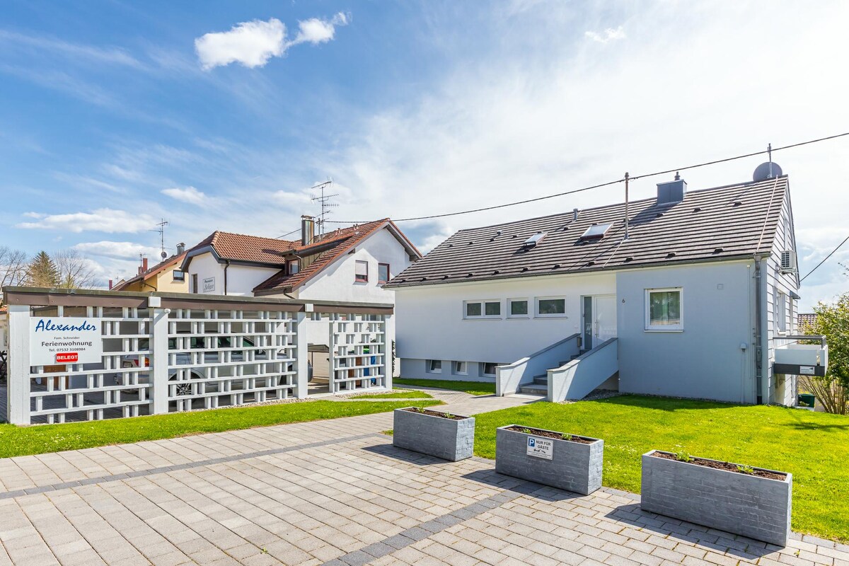 U našoj idiličnoj seoskoj kući u predgrađu Meersburga nudimo vam 2 renovirana stana. Stan „Bellevue“ je dvosoban stan sa velikim balkonom i pogodan je za dve osobe. Možete da uživate u pogledu na dolinu Salemer. Meersburg je udaljen 5 minuta vožnje. Putujte opušteno. Zahvaljujući našem elektronskom otvaraču za vrata sa šifrom za broj, možete fleksibilno da planirate putovanje i da se prijavite od 16:00.