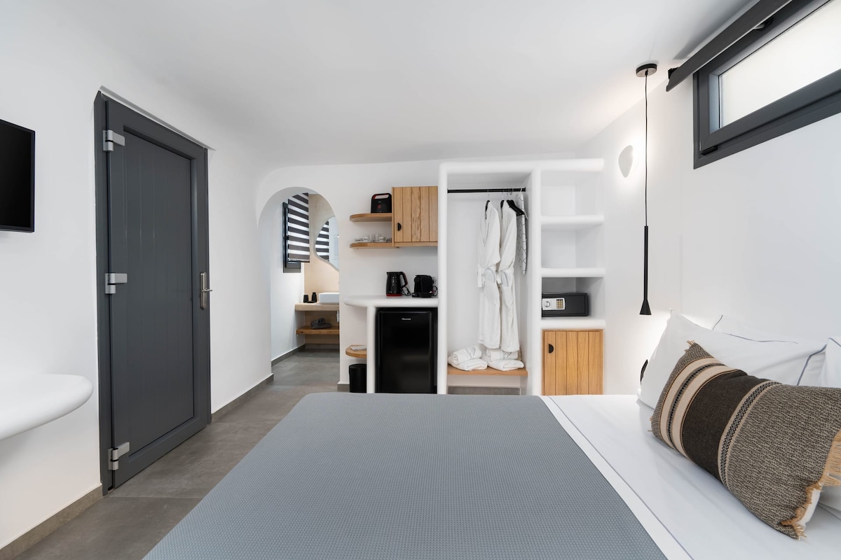 Moja eko-kuća na Santoriniju je mirno utočište u srcu sela Megalohori. Nekadašnji tradicionalni santorijski dom, pažljivo je renoviran prirodnim, ekološki prihvatljivim materijalima, stvarajući minimalistički, zen-inspirisan prostor. Uživajte u privatnom dvorištu sa grijanim đakuzijem na otvorenom (36–38°C) – rijetka udobnost, posebno tokom hladnijih večeri. Okružen šarmantnim seoskim životom, lokalnim tavernama i kafićima, nudi autentično i opuštajuće iskustvo Santorinija.