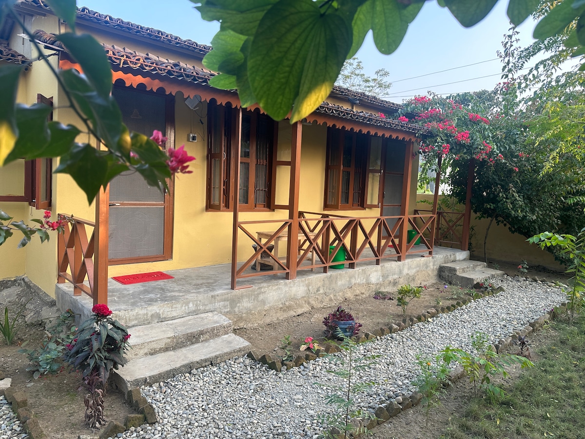 Dobro došli na Cutee 's Farm, gdje se tradicionalni šarm susreće sa modernom udobnošću na granicama Nacionalnog parka Čitvan - Uneskovog spiska svjetske baštine. Naša kuća na farmi je intimna veza sa prirodom. Bez obzira na to da li tražite kulturno bogatstvo ili modernu pogodnost, Cutee 's Farm obećava bijeg kako bi vaš boravak bio poseban i nezaboravan. Smještena u slikovitom području nasuprot odmarališta Kasara i u blizini luksuznog odmarališta Soaltee Westend, naša seoska kuća je savršen spoj mira i praktičnosti.