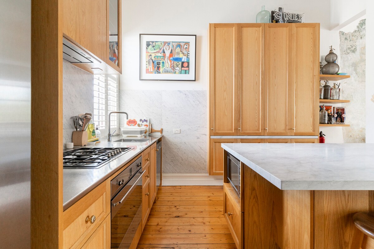 Port Melburn je super kul unutrašnji zaliv Melburna. Savršeno je za ovaj veliki, svijetli dom u stilu skladišta sa njujorškim loft ugođajem, ali sa izrazito rustikalnim australijskim štihom. Tu su neobičan tuš od valovitog gvožđa, vrata ambara u grmlju i prikazana australijska oprema za plažu. Glavna spavaća soba + kupatilo, bračni krevet + krevet za jednu osobu i spavaća soba, studio + kupatilo, soba za multimediju + bračni krevet na razvlačenje. Tri kupatila! 3 klima-uređaja. Dobro opremljena kuhinja, ogromna nadsvođena dnevna soba. Roštilj.