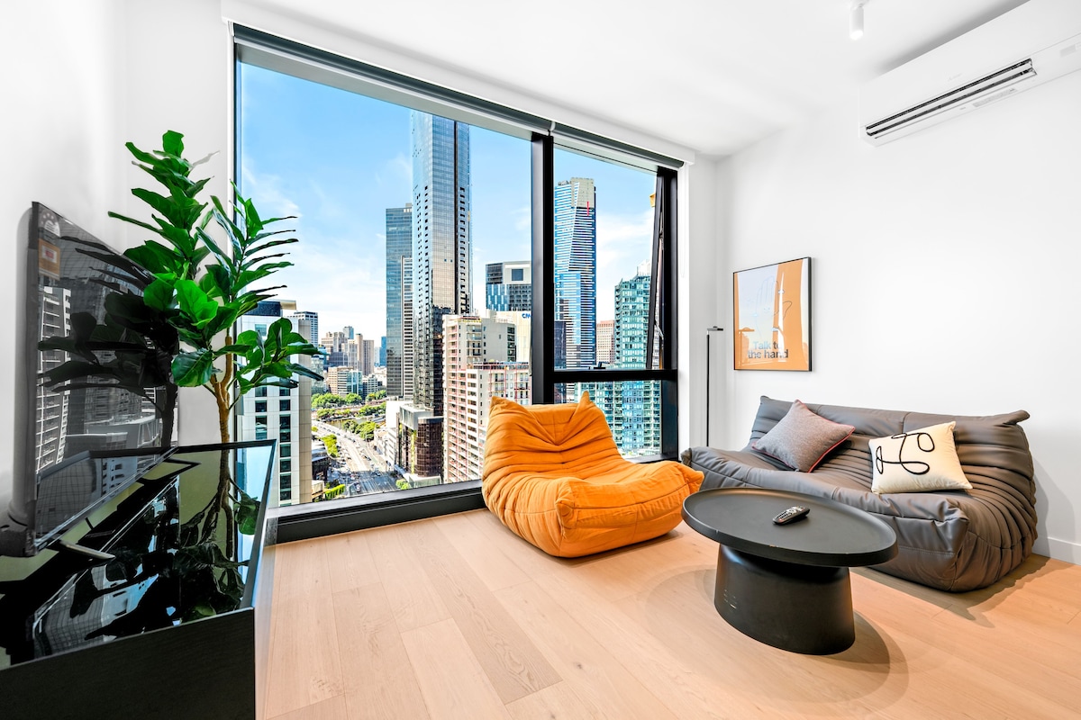Miran prostor koji možete smatrati domom dok ste u Melburnu, sopstvenom dvosobnom stanu sa 2 kupatila (64 m2 unutrašnjeg + 6 m2 balkona). Dizajniran sa utočištem na umu jednostavno moderno i minimalističko. Uživajte u predivnom pogledu na gradski horizont. Ovo je prostor pogodan za porodice. Nalazi se pored stanice Južnog krsta i autobuskog terminala. Smješten u zoni slobodnog tramvaja - sve što Melburn nudi vam je na dohvat ruke - u blizini jeftinih restorana, elegantnih restorana i modernih kafića.