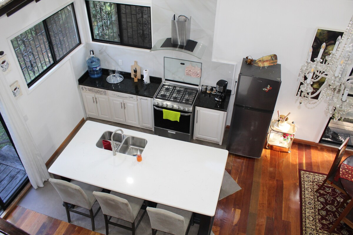 Wake up in a treetop retreat, surrounded by a tropical garden alive with birds, palms, and jungle greenery. Elevated among the trees, this peaceful, immersive stay just minutes from San Ignacio—close to everything, yet feeling a world away Sip your morning coffee above the canopy, as hummingbirds drift through the garden, unwind in a space designed to connect you with nature without sacrificing comfort Part of our collection of ' jungle like' stays set in lush tropical gardens near San Ignacio.
