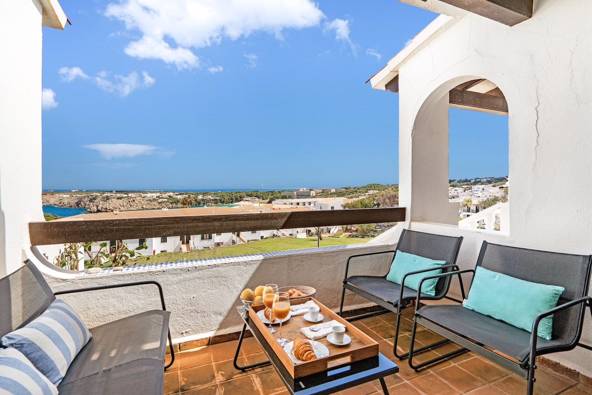 Stan sa terasom koji se nalazi u Kala Blanki (4 km od Ciutadele). Izuzetna lokacija 1 minut od šetališta , 5 minuta hoda od Kala (bela uvala) i 10 minuta hoda od Kala Santandrije. Idealno područje za uživanje u miru i spektakularnim zalascima sunca na ostrvu. Ima 2 spavaće sobe (4 kreveta), trpezariju (sa sofacamom), 1 kupatilo, kuhinju i prelepu terasu sa pogledom na more kako biste uživali u zalascima sunca. Bazen za zajednicu, minimalna potrošnja.