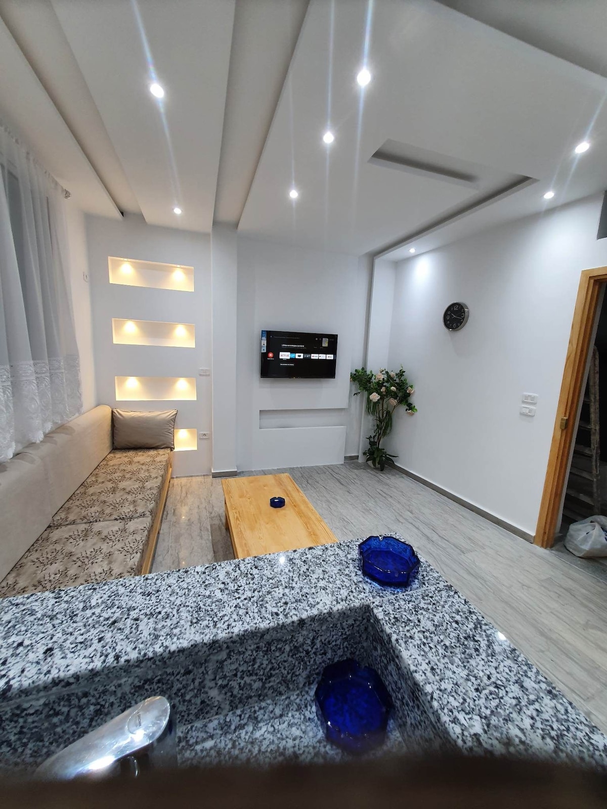Celo mesto, neograničen WIFI, 3 AC jedinice, ukusno opremljen i u neposrednoj blizini, 35min vožnje do Tunisa i aerodroma, 5 do 10min vožnje do plaža i centra Bizerte. Visoko osiguran 24/7 zaštitar, lift i parking. Moderan dnevni boravak, opremljen sa 3 klima uređaja, WiFi, blizu svih 35 min vožnje do Tunisa i aerodroma. 5 do 10 min vožnje do plaža i centra grada Izuzetno bezbedno sa zaštitom, liftom i bezbednim parkingom