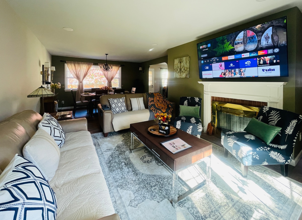 Moderni kolonijalni dupleks samo nekoliko blokova od Univerziteta Prinston: • Prošetajte do desetina restorana, parkova i prodavnica • Bicikli • Punjač za električna vozila + 2 parking mjesta • Teretana: bicikl, tegovi, kettlebells, step • Prikladno za porodice: Pack & Play, stolica za hranjenje, igre, kišobrani • Pametne brave na Jejlu + brzi Wi-Fi • Kuhinja sa espresom, francuskom prešom, kapanjem i hladnim pivom Savršeno za porodice, nastavnike, ponovna okupljanja i vikend-putovanja.