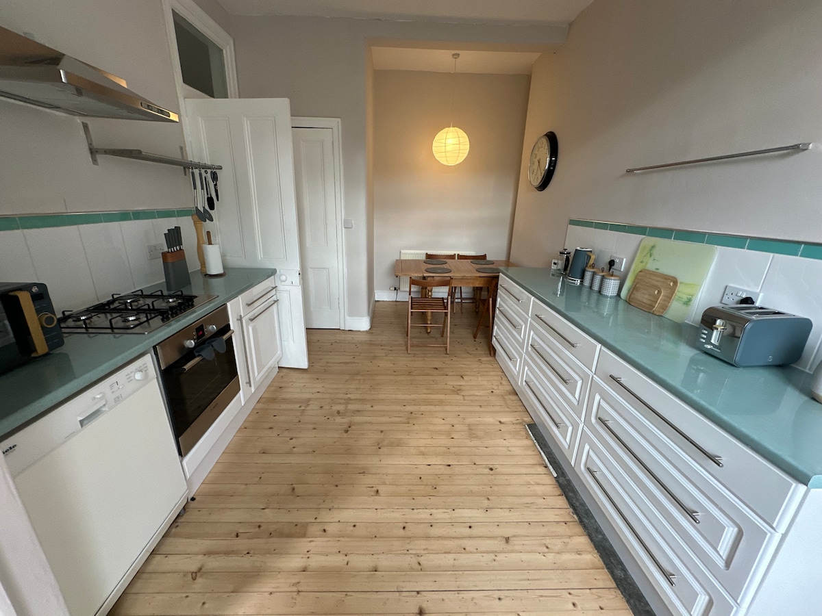 Apsolutno predivan neobičan stan, pun karaktera i boja. Visoki plafoni sa prelepim vijencima i plafonskim ružama. Veliki prozori koji preplavljuju svetlošću. Dobro opremljena prostrana kuhinja sa svime što vam treba za kuvanje, nevjerovatno udobnim krevetima, ovaj stan ima sve što vam treba kako bi vaš boravak bio najbolji do sada. Smješten u tihoj ulici u jednoj od najneverovatnijih delova Edinburga, Bruntsfield, stan je udaljen nekoliko minuta od nezavisnih prodavnica, zanatskih kafića i autobuskih stanica.