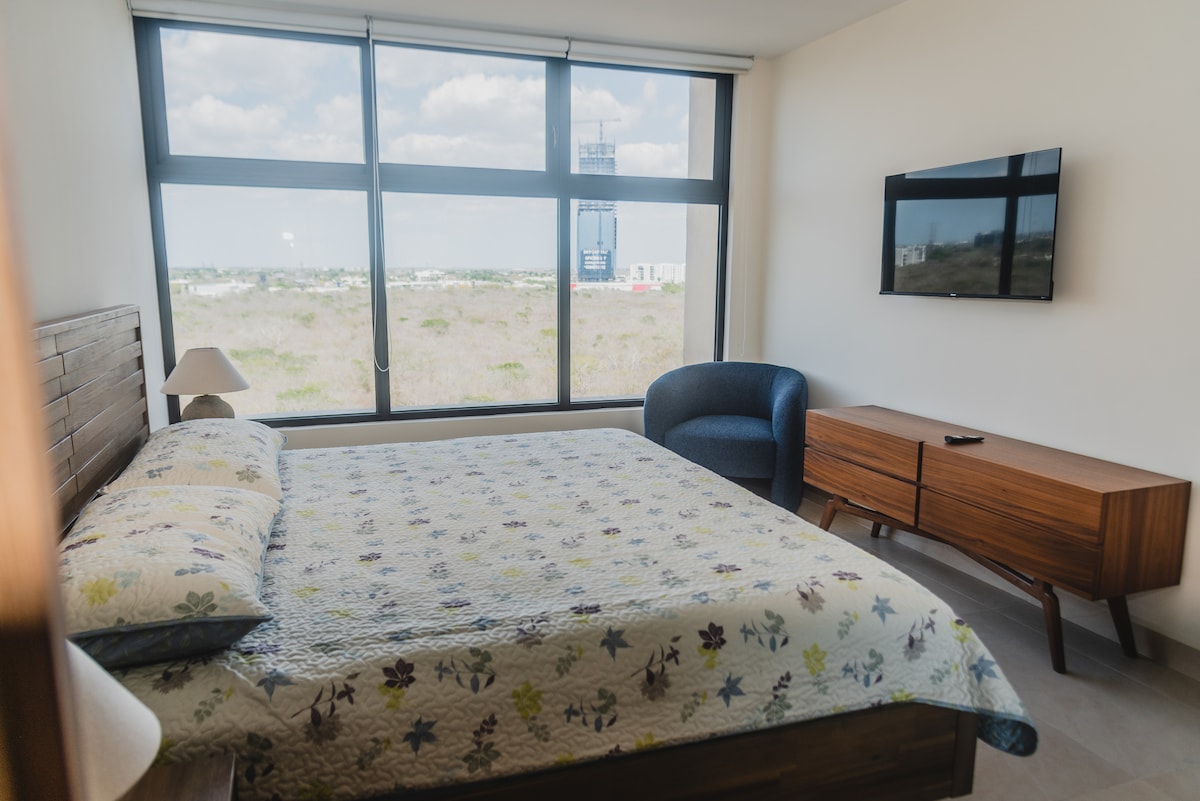 Potpuno opremljen stan sa 2 spavaće sobe sa klima-uređajem i hotelskom posteljinom, prostranom kuhinjom, TV sobom, trpezarijom i odličnom lokacijom. Nasuprot LUČKOM trgovačkom trgu na dva minuta od ulica Galerías Mérida, Costco, Liverpool, Centro de Convenciones Siglo XXI i Museo Maya. Javni prevoz je na uglu.