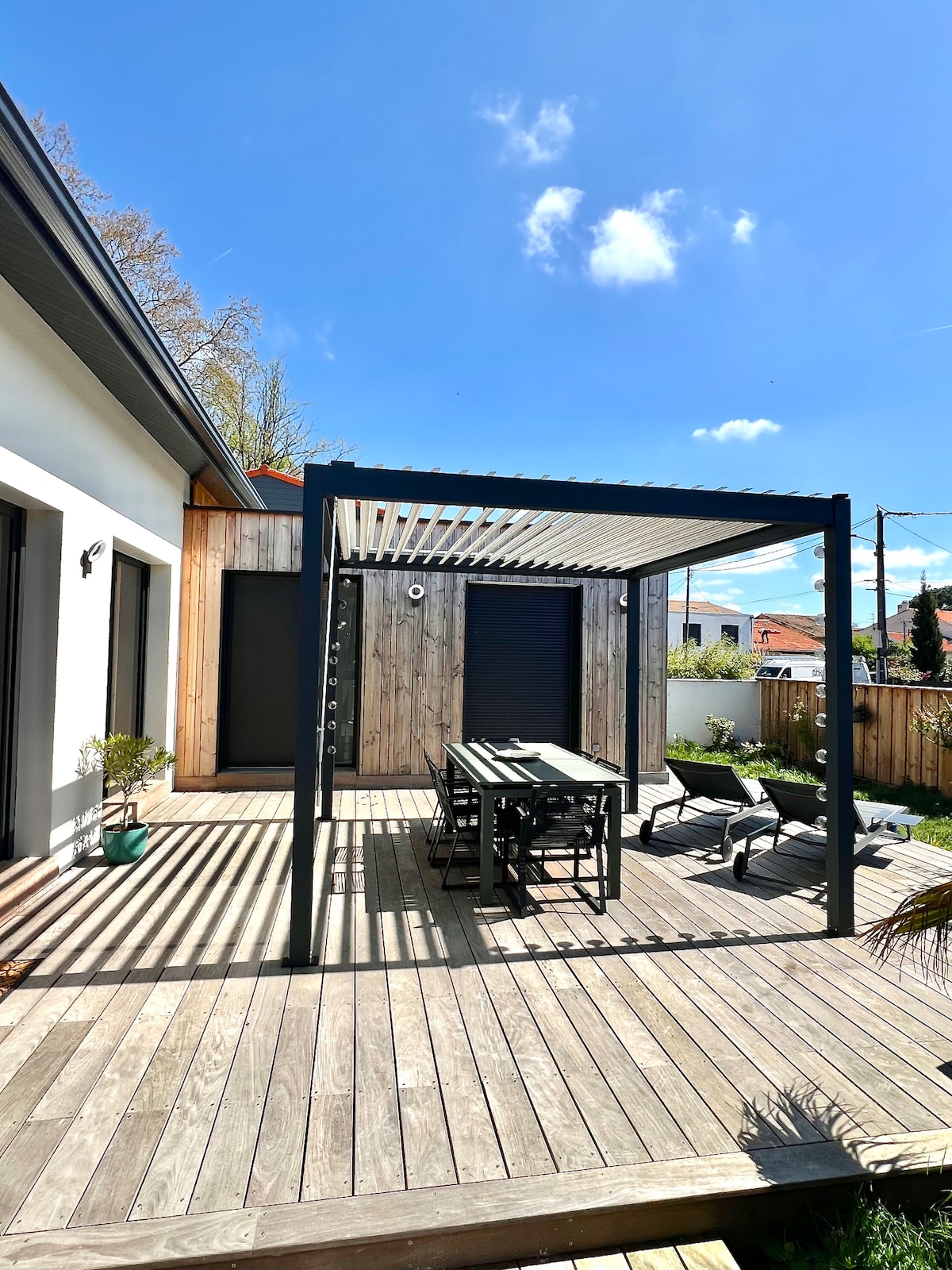 Šarmantna seoska kuća sa privatnom terasom i zasebnim ulazom. Idealan za 1-4 osobe, udoban i elegantan nudi mezanin sa bračnim krevetom i udobnom sofom. Samo 5 km od aerodroma Merignac (moguć prevoz), idealan je za istraživanje Bordoa (15 minuta tramvajem), njegovih poznatih vinograda i okeanskih plaža. Autobuska stanica - 2 min, tramvaj - 15 min hoda. Uživajte u laganom doručku, mirnom i zelenom ambijentu i besplatnom parkingu na ulici.
