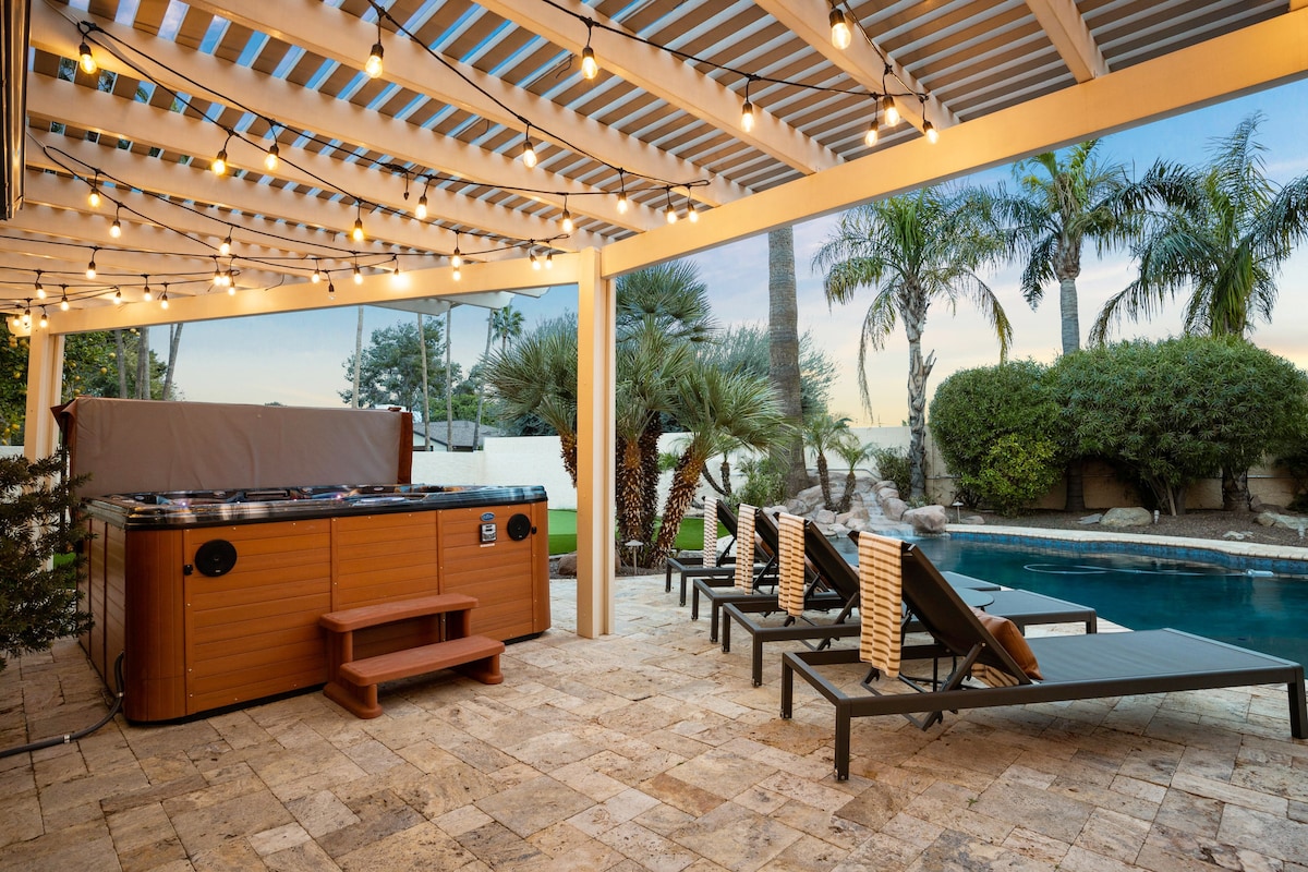 Dobro došli u Mejv u Starom gradu Skotsdejla. Pružite svojoj grupi prostor koji zaslužuju u našem glavnom domu sa 5 spavaćih soba i 2 kupatila, kao i šestom spavaćom sobom u kućici pored bazena. Oba kupatila imaju dva umivaonika i velika ogledala za dovoljno prostora za pripremu. Smještaj ima 1 glavnu dnevnu sobu, 2 gostinjske sobe u stilu odmarališta sa namjenskim dnevnim boravcima, potpuno opremljenu kuhinju, čajnu kuhinju, bar/igraonicu, bioskop na otvorenom, podvodni barski sto i još mnogo toga.