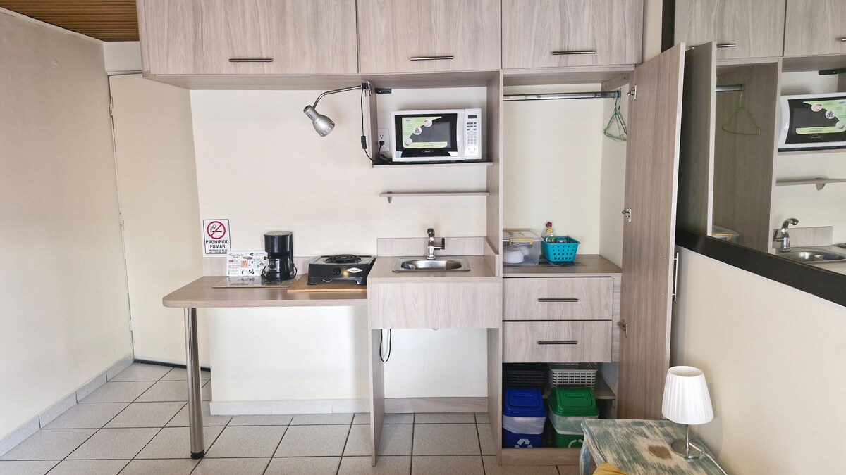 Naš komforni jednosobni apart-studio, unutrašnja lokacija sa prozorima prema garaži i dvorištu, boemski, minimalistički, sa malom baštom pruža pravi urbani osjećaj! U njega se udobno mogu smjestiti četiri osobe, a smješten je u centru grada u ulici, s lakim pristupom Metropolitan parku Simona Bolivara. Uživajte u kompletnoj kuhinji i pristupu Transmileniju. Ovaj prostor je idealan za dve osobe; međutim, obezbeđujemo kvalitetan kauč na razvlačenje za još dve osobe u slučaju potrebe. Topla voda