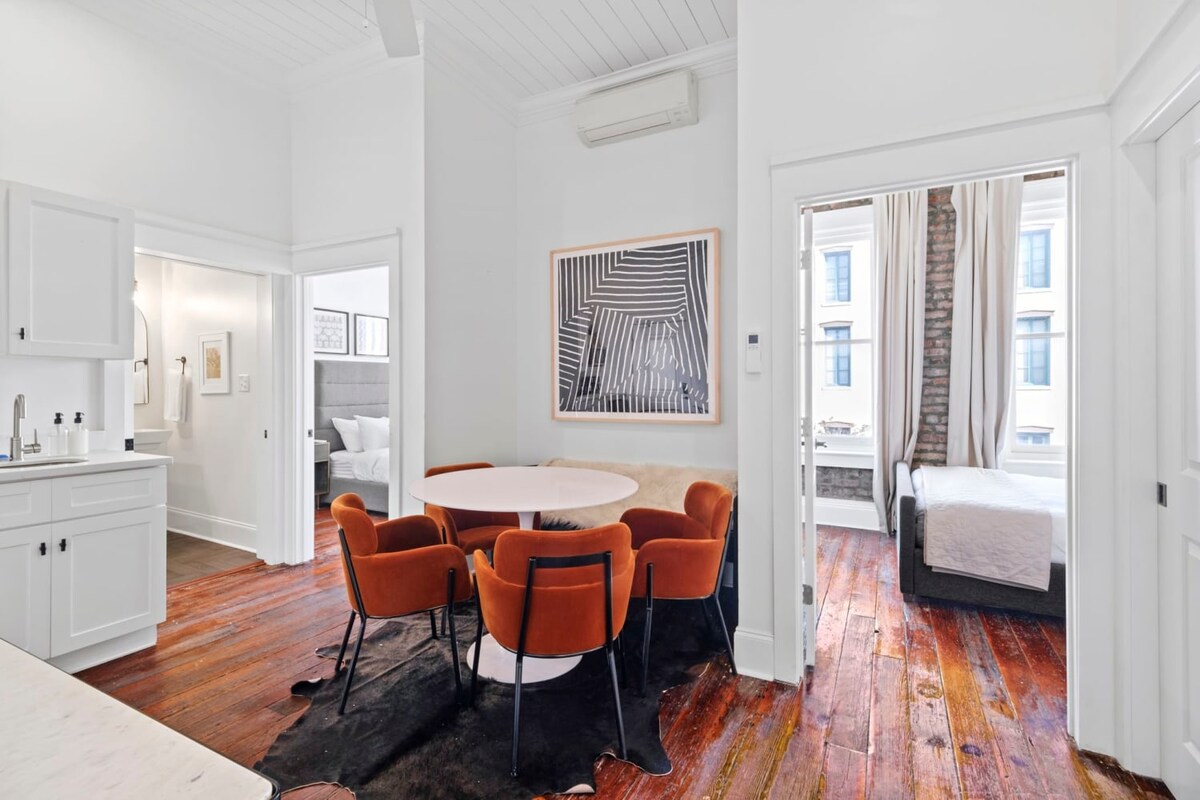 ⭑ Dobro došli u The Black & Gold ⭑ Ovaj elegantni apartman s dvije spavaće sobe i dva kupatila odiše izloženom ciglom, originalnim drvenim gredama i prostranim privatnim spoljnim prostorom u kojem se nalazi šarm Nju Orleansa sa vrhunskom udobnošću. Savršen za parove, prijatelje ili male grupe, The Armstrong uključuje potpuno opremljenu kuhinju, unutrašnju trpezariju za šest osoba i svijetli dnevni boravak u srcu Skladišnog okruga. Samo nekoliko koraka od Francuske četvrti, to je savršena baza za istraživanje grada.