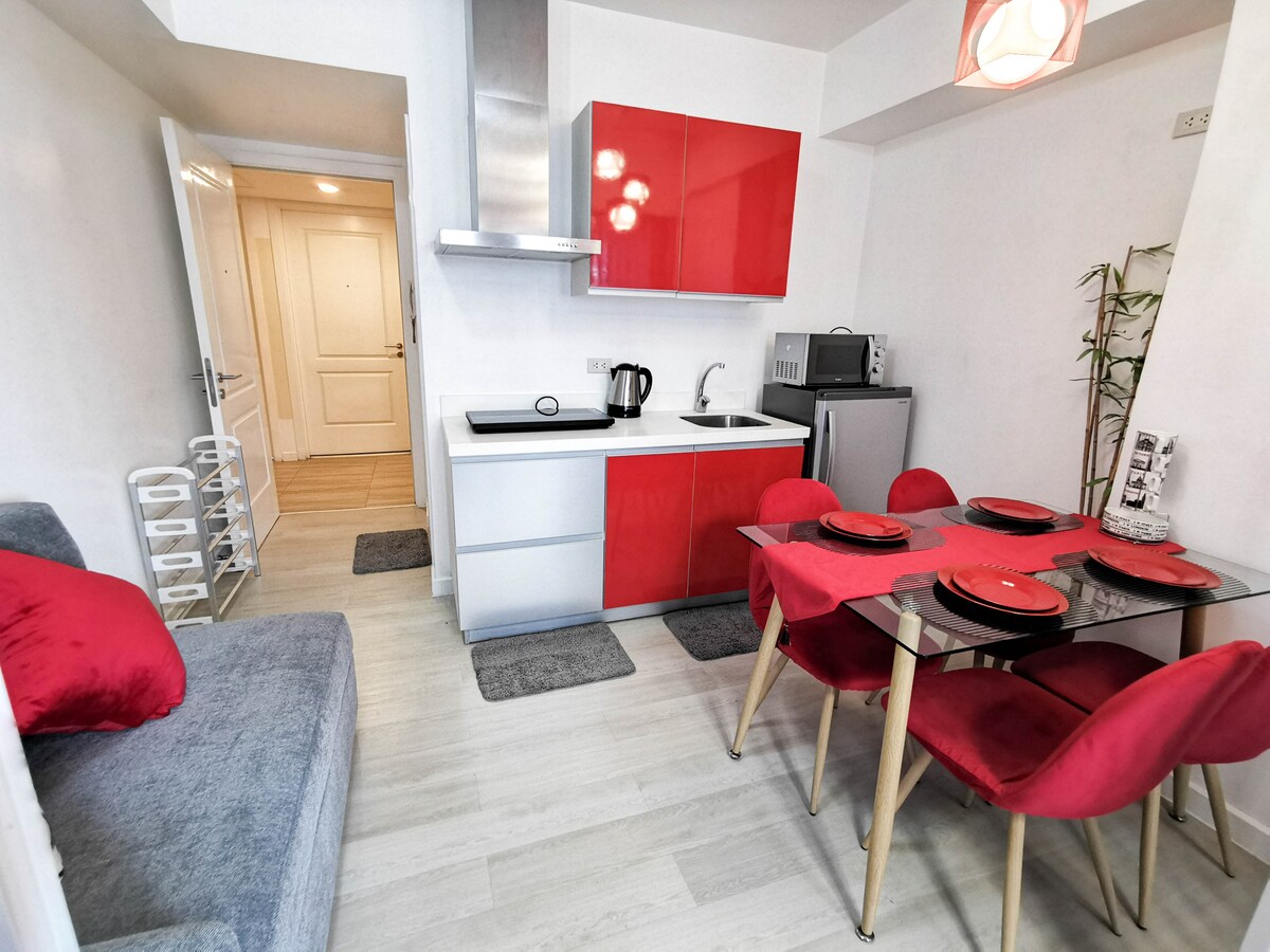 Dobitnik „Modernog stana 2024. godine na Filipinima” od strane nagrade Travel & Hospitality. Potpuno namještena jedinica sa 1 spavaćom sobom površine 23,47 m2. Renovirao sam ga kako bi jedinica bila jedinstvena i elegantna. Svi uređaji su potpuno novi sa izgledom sofisticiranog kao i funkcionalni. Da bi vaš boravak bio bezbrižan, nikada ne ugrožava čistoću. Moj objekat ima ocjenu za čistoću 5.0/5.0. Uvek možete da očekujete očišćenu i sterilisanu jedinicu tokom boravka u mom objektu.