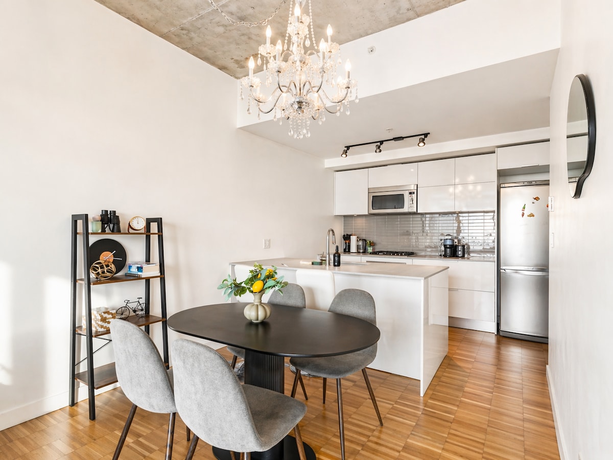 Смештен у култној згради Вудвардс у Ванкуверу — овај светао и отворен стан од 104 квадратна метра има прелеп поглед на планине и луку Ванкувер. Уживајте у јутарњој кафи на балкону док сунце излази и крузери пристижу у луку. Изађите напоље да бисте истражили најбоље ресторане, терасе, продавнице, позориште и спортске догађаје у Гастауну — све на само неколико корака од стана. Други простор за спавање укључује удобан кухињски кревет Мерфи који се савршено уклапа у отворени распоред!