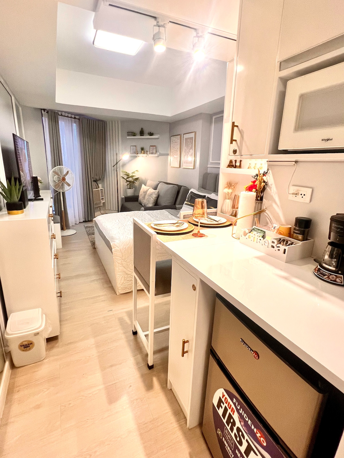 Keep it simple at this peaceful and centrally-located place at the 22nd floor with a big balcony that holds a majestic view of Mt. Arayat. Be among the first to experience this light and airy modern studio with complete staycation needs from kitchen to own private balcony!