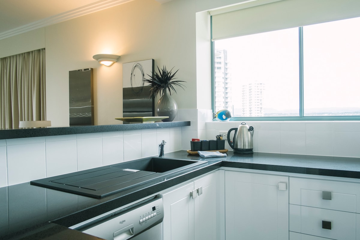 Uživajte u luksuznom boravku u našem zapanjujućem stanu Circle On Cavil. Nalazi se na 41. spratu sa neverovatnim pogledom od 180 stepeni preko okeana i zaleđa. Nalazi se u centru svih prodavnica, plaža i avenije Cavil. Opustite se i uživajte u najboljem pogledu na svoj privatni balkon. Potpuno opremljena kuhinja, luksuzno spa kupatilo, dnevna soba je opremljena King namještajem. Obe spavaće sobe su opremljene kvalitetnim dušecima na vrhu jastuka. Šetnja do plaže Nije potreban automobil - uhvatite tramvaj za Broadbeach ili autobusom do svih zabavnih parkova.