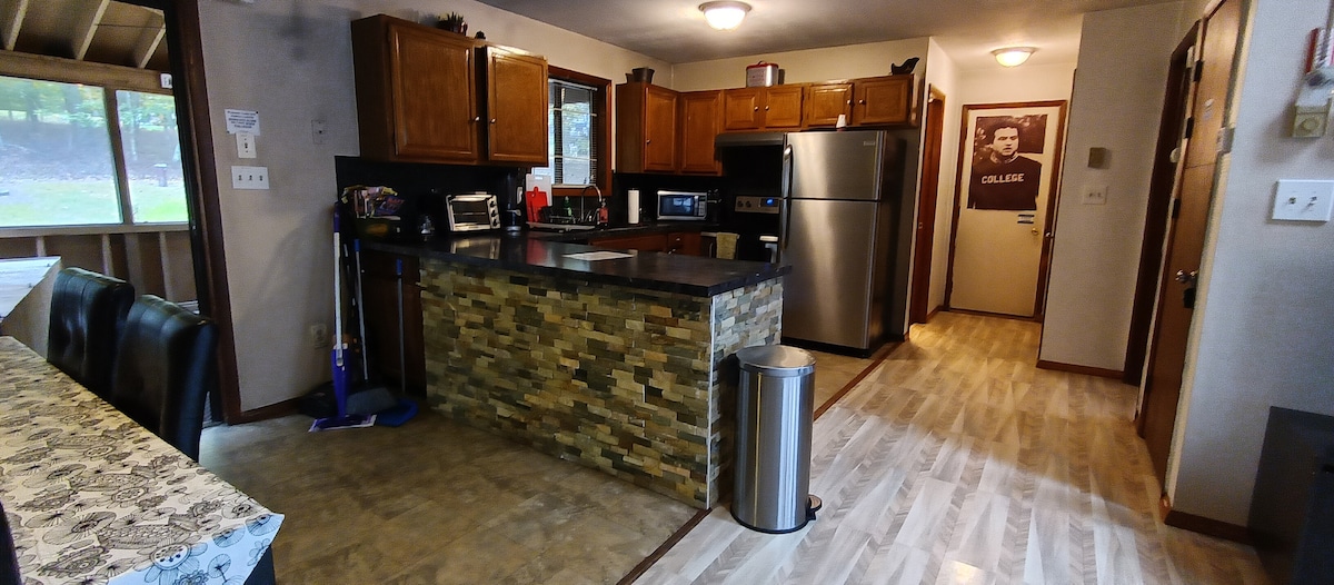 Dobro došli u brvnaru Split Creek, privatno utočište uz potok smješteno niz miran zemljani put duž Maršalovog potoka. Ova udobna brvnara sa 2 spavaće sobe i 1,5 kupatila nudi jedinstven doživljaj Pokonosa koji kombinuje rustikalni šarm sa modernom udobnošću. Opustite se u hidromasažnoj kadi dok umirujući zvuci potoka teku, pecite kolače oko ognjišta pod zvjezdanim nebom i uživajte u opuštajućem odmoru u kojem su vaši jedini susjedi visoko drveće i lutajući jeleni. Udoban smještaj u Kriksajdu koji nećete zaboraviti