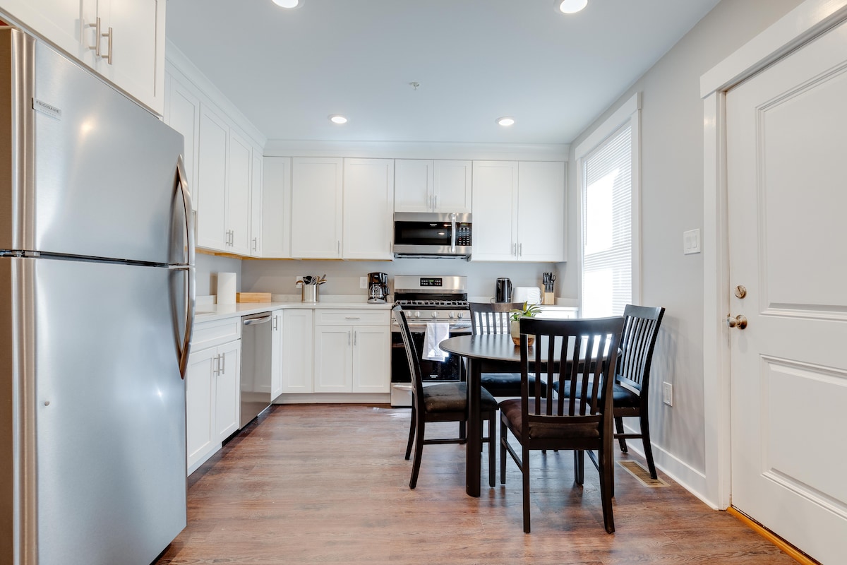 Ovaj dvokrevetni, 1 kupatilo, prelepo opremljen stan sa vešerom u jedinici i potpuno opremljenom kuhinjom za dugoročno i za kratkoročno iznajmljivanje. Opremljeno sa dva bračna kreveta, ovo prelepo uređeno i namešteno potkrovlje nalazi se u centru Bostona. Uključuje sav namještaj i opremu za kuvanje! Stan je dostupan putem postupka samostalnog dolaska kako bi se smanjila izloženost! Bezbednost na licu mesta i 2 lifta. Jedinice se profesionalno čiste i dezinfikuju između svakog boravka.