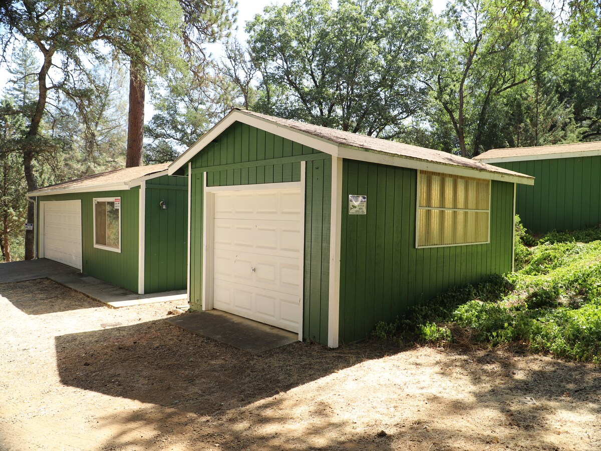Opustite se na terasi, uživajući u predivnom izlasku/zalasku sunca iznad planina ili nevjerovatnom noćnom nebu. Više od 12 hektara borova i hrasta okružuje kuću. Ovaj studio na spratu je samo vaš, ne dijelite ga s drugima. Oko 45 minuta do ulaza u Nacionalni park Josemiti (1 sat do dna doline). Ispod, parkirajte ili igrajte se u garaži za 1 automobil (grejanje i klima-uređaj) sa stolom za ping-pong i drugim igrama. Električni roštilj na terasi. Uključuje aparat za vafle, miks i sirup, aparat za kokice i kokice. 10 minuta vožnje do Maripose.