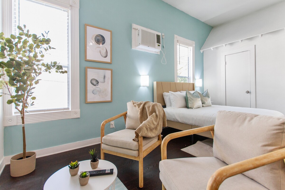 Luxe Downtown Hideaway 🌆✨ Boravite u stilu samo 10 minuta od Tojota Centra i Minute Maid Parka. Naš smještaj nudi luksuzni bračni krevet, udoban kauč na izvlačenje i opremljen mini-bar. Idealno za dugoročne boravke s brzom Wi-Fi mrežom i mašinom za pranje/sušenje veša u jedinici. Domaćin je Super domaćin s recenzijama s 5 zvjezdica, poboljšanim čišćenjem i jednostavnom samostalnom prijavom. Savršeno za poslovne putnike, parove ili ljubitelje događaja. Savršeno utočište u centru grada vas čeka!
