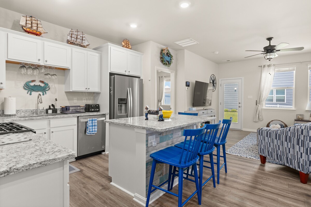 Ova svijetla i vesela potpuno nova građevina na produženom uglu u Bishops Landing zajednici odiše opuštanjem i zabavom za grupu prijatelja ili cijelu porodicu. Sa potpuno opremljenom kuhinjom i otvorenim tlocrtom ispunjenim suncem zasigurno ćete zajedno stvoriti neverovatne uspomene. Uživajte u brojnim sadržajima zajednice, visite u potkrovlju igrajući igre, odmarajte se u kutku za čitanje ili gledajte film na TV-u od 75"sklupčan pored vatre - za svakoga ima ponešto! Jedva čekamo da vas ugostimo.