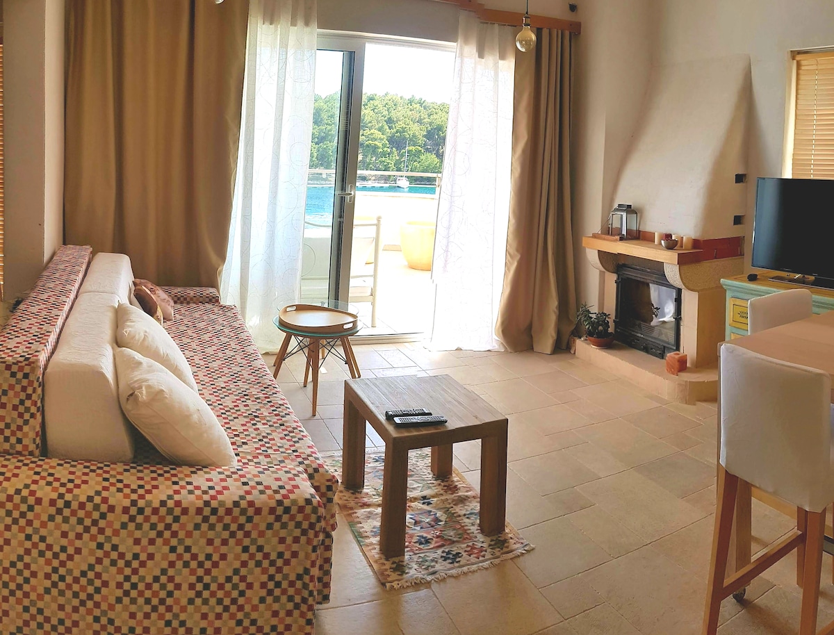 Naš moderan, moderan i udoban dvosobni stan nudi taj mali raj. „Velike terase sa bočne i zadnje strane, zajedno sa udobnom terasom sa pogledom na more. Prozračan, svetao stan sa klima-uređajem površine 84 kvm i galerija nudi nezaboravno iskustvo. Zadivljujuća morska prednja strana (4. sprat) sa sopstvenim privatnim ulazom, sa pogledom i sa lakim pristupom čistim vodama Jadranskog mora.