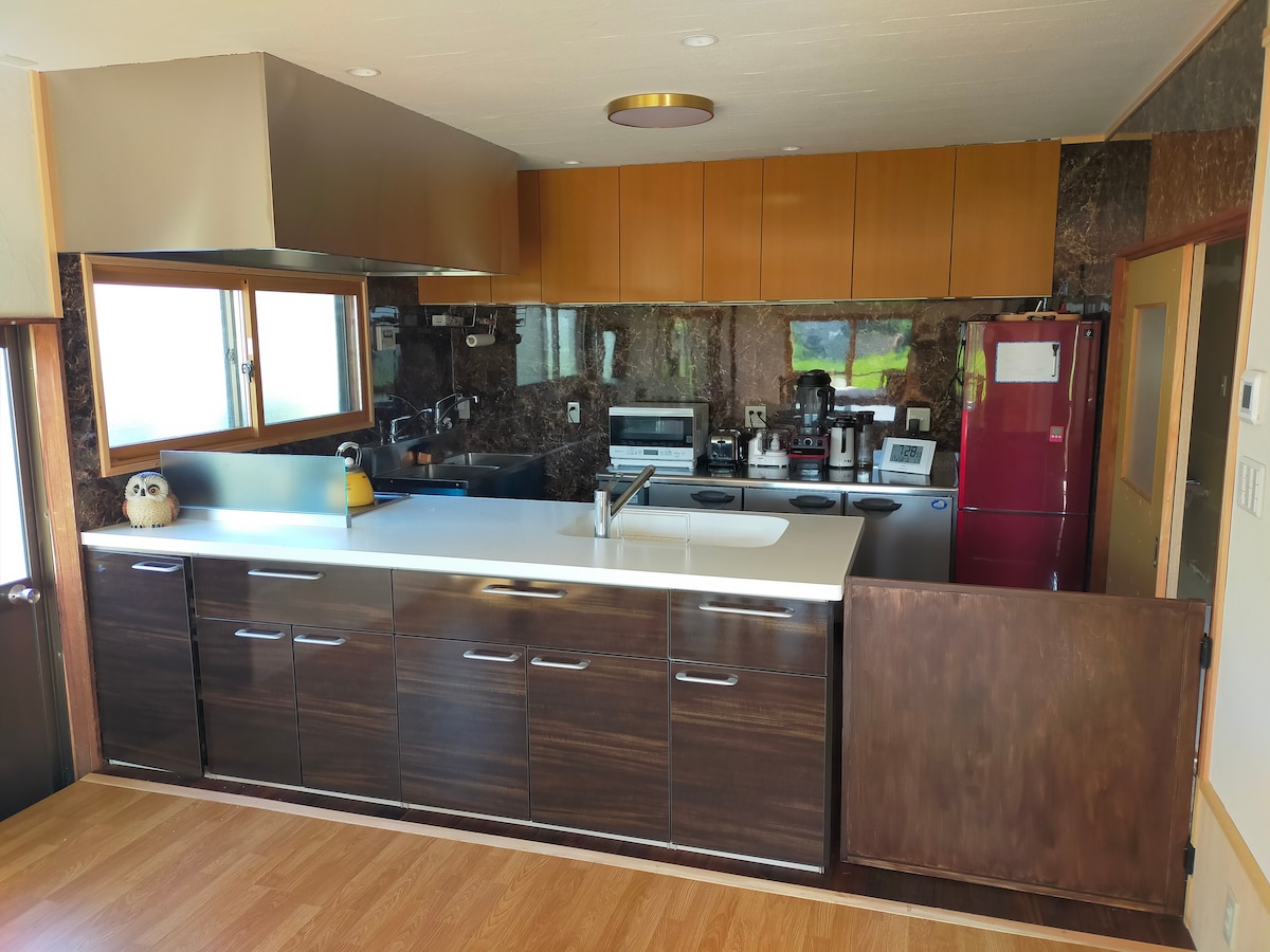 Acorn is a private 5LDK inn near to Lake Kawaguchiko. Elegantna, mirna i nostalgična kuća.Savršen je za grupe sa porodicama i prijateljima. Dostupan je i besplatan prevoz Ako nemate automobil, više informacija ♪ potražite u odjeljku „Ostale napomene”. [Karakteristike smještaja] Potpuno renovirana stara kuća Upravo otvoreno u februaru 2025.Ima miran dizajn sa tonom drvenog zrna. 5LDK Ima 4 spavaće sobe (6 kreveta za jednu osobu, 1 sklopivi krevet, 1 kauč na razvlačenje).Može da ugosti do 8 osoba.Možete i da ostanete privatni nakon okupljanja. Opcije za roštilj sa ognjištem Uživajte u roštilju u svom privatnom prostoru u velikom dvorištu. - Parking Besplatan parking je dostupan za oko 3 automobila. Park Oiši (Kavagučiko) je udaljen 4 minuta vožnje automobilom. Iako se nalazi na dobroj lokaciji, mirno okruženje je atraktivno. Obratite pažnju na zimske mjere zaštite. (Klima-uređaj, plinski šporet, električno ćebe) Drugo Tu su i toalet i pegla za kosu. To je topao smještaj zbog kojeg želite da se vraćate iznova i iznova. Jedva čekamo da vas ugostimo.