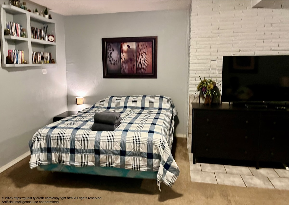 12-15 minuta od sajmišta/amfiteatra Ridžfild! Svideće vam se ovaj pogodan stan u prizemlju u zadnjem delu naše prodavnice. Površina je 500 stopa kvadratnih sa malom spavaćom sobom i udobnim bračnim krevetom. U dnevnoj sobi se nalazi kauč na razvlačenje u kojem može da spava jedna odrasla osoba ili dvoje djece. Spoljašnji prostor je potpuno ograđen, savršen za kućne ljubimce i decu.