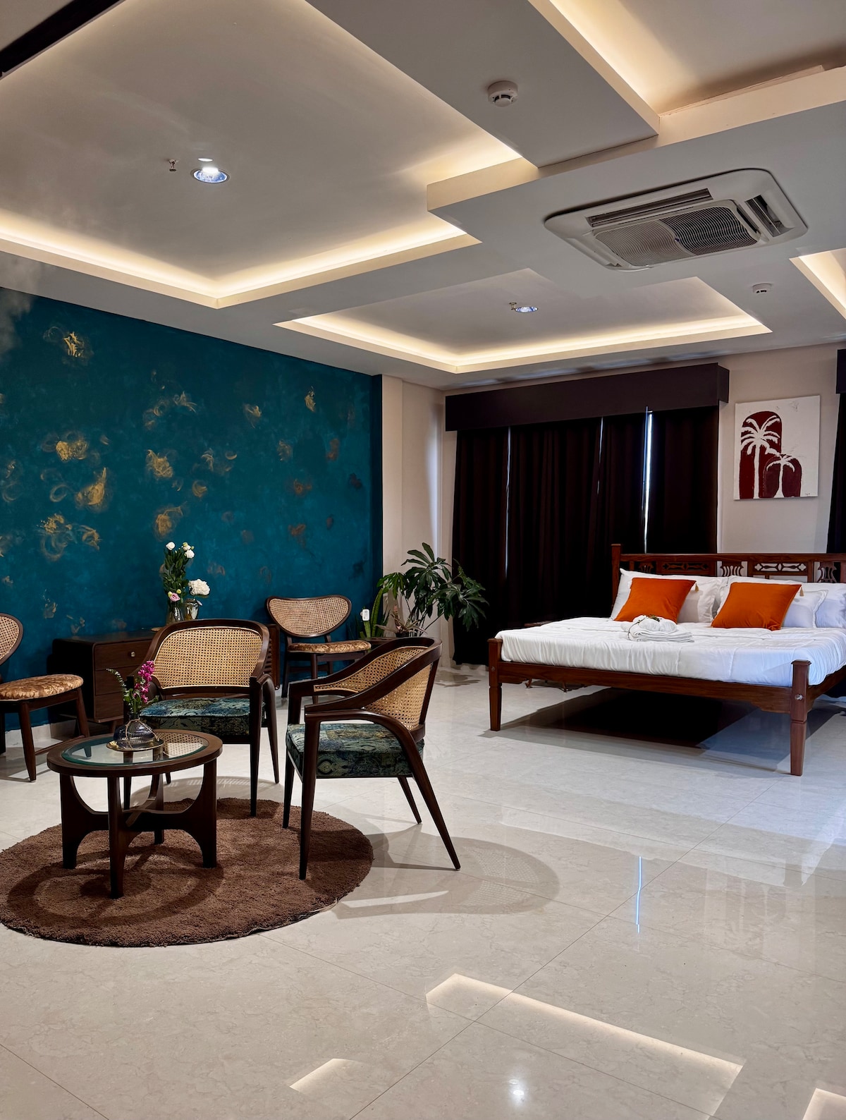 Skriveni dragulj skriven u Panjimovom najboljem poštanskom broju. Naš 2BHK penthouse ima privatnu terasu i nalazi se na kratkoj šetnji od plaže Miramar. Goanovo utočište okruženo zelenilom; prostrani dnevni boravak otvorenog plana pretvara se u šik prostor nakon zalaska sunca s dizajnerskim ambijentalnim osvjetljenjem. Poznato šetalište, prodavnice i kafići udaljeni su samo nekoliko minuta hoda. Fontainhas i kockarnice udaljeni su kratku vožnju. Uživajte u brzom Wi-Fi-u ako radite od kuće. PS: Ujutru potražite paunove!