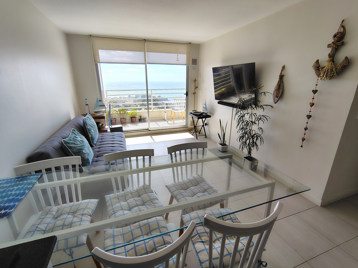 Acogedor alojamiento frente al mar con vistas espectaculares al océano. Piscina temperada todo el año, 4 piscinas exteriores, canchas de fútbol y tenis, juegos para niños, estacionamiento, ascensor, sauna y acceso directo al mar. Se permite early check-in y late check-out con un pago adicional de 10,000 pesos por hora, si no hay huéspedes anteriores o posteriores. Admite mascotas con un pago adicional. Ideal para familias o grupos, con espacios amplios y confortables para descansar y disfrutar.