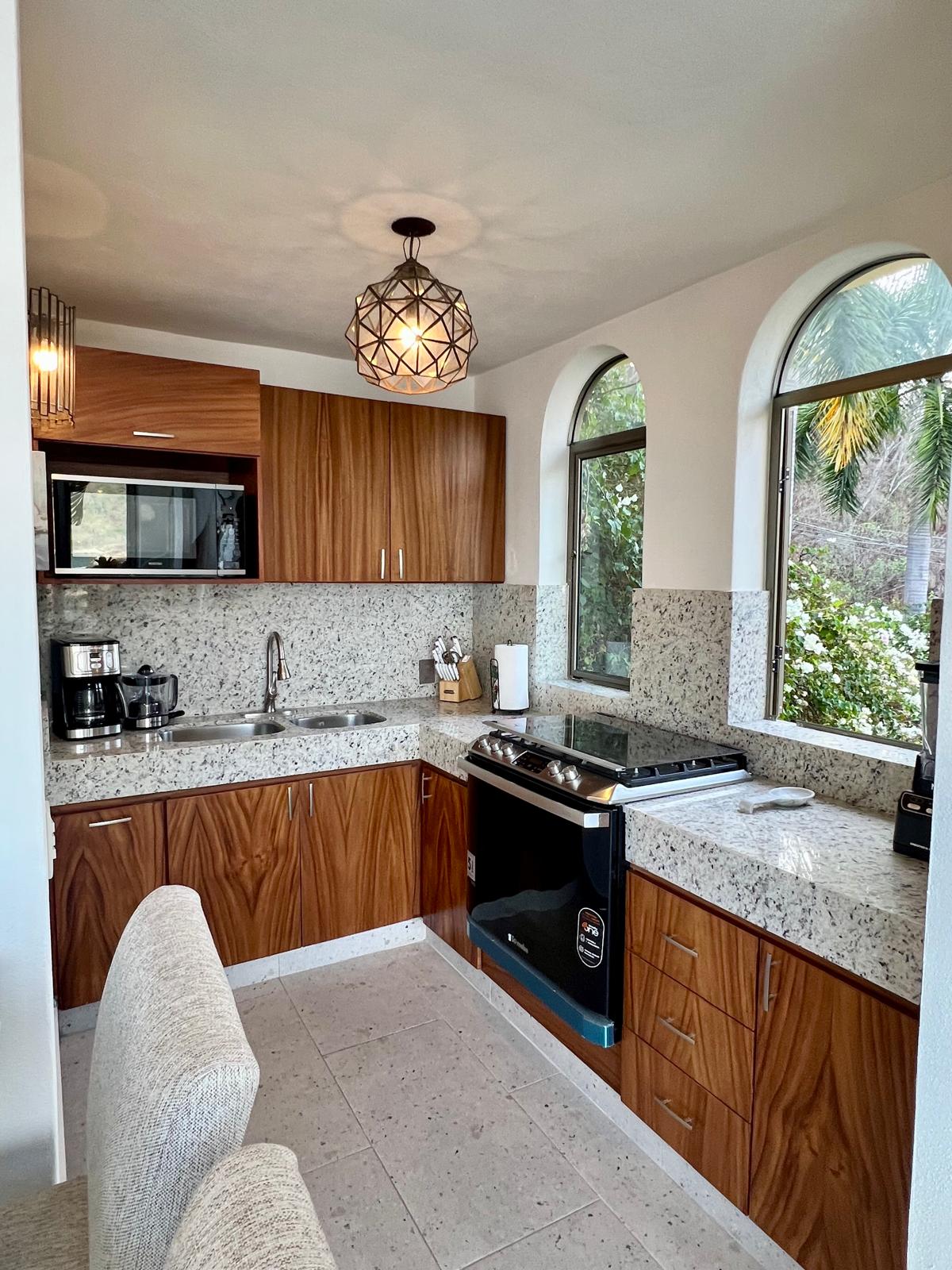 Uronite u privatni osvježavajući bazen i divite se panoramskom pogledu preko puta zaliva. Ova vila odražava meksičku sofisticiranost starog svijeta sa izloženim drvenim gredama, ručno oslikanim pločicama i kolonijalnim antikvitetima uz savremene sadržaje. Naša vila se nalazi visoko na planinskom grebenu sa panoramskim pogledom na zaliv Banderas, Puerto Valartu na severu i Los Arkos na jugu. Lokacija i kolekcija vila su široko priznata kao jedna od najboljih koje PV može da ponudi zbog neusporedive lokacije i predivnih arhitektonskih detalja naše enklave vila. Ovo je autentični priobalni Meksiko - sav moderan luksuz u zapanjujućem okruženju. To je naš raj i dom daleko od kuće i ponosni smo što smo ga podelili sa našim gostima! Vila je vaša! Od prednje do zadnje strane i od vrha do dna! Uvek sam dostupan/na putem imejla. Imamo i upravnika objekta u PV-u, domaćicu, baštovana/čistača bazena i redovne usluge održavanja. Kao rezultat toga, svaki problem koji se pojavi obično može brzo riješiti naše lokalno osoblje. Naša sobarica čisti dva puta nedeljno kao deo naše cene, a usluga bazena/bašte se odvija svaki drugi dan, tako da gosti obično imaju nekoga ko će im pomoći i razgovarati sa njima, na bilo koji potreban način. Naše osoblje je sa nama mnogo godina i prilično je vešt i iskusno u pružanju usluga našim gostima. Ova vila se nalazi na južnoj obali Puerto Valjarte, smeštena među planinama prekrivenim bujnom džunglom pored zaliva Banderas. To je otmjeno područje prepuno neverovatne prirode i luksuznih domova. Neke od najboljih plaža su odmah ispred vrata. Naša skrovita i ekskluzivna zajednica vila udaljena je samo nekoliko trenutaka od šarmantne i istorijske romantične zone u Puerto Valarti, nekoliko minuta od grada i samo deset milja od aerodroma Puerto Valarta. Taksiji su lako dostupni, a za 7 USD ste u gradu za deset minuta. Autobus na obali staje ispred naše enklave vile svakih 15 minuta, a za 0,50 USD možete biti u gradu za 10 minuta!! Privatni parking je uključen. Vile imaju obezbeđenje u smeštaju od 19:00 do 7:00 svakog dana. Sve probleme ili pitanja koja se pojave u večernjim satima može da riješi naše osoblje obezbeđenja. Za porodice sa malom decom, imamo krevete za pakovanje, boogie daske, peškire za plažu i drugu opremu potrebnu za goste koji vole plažu!