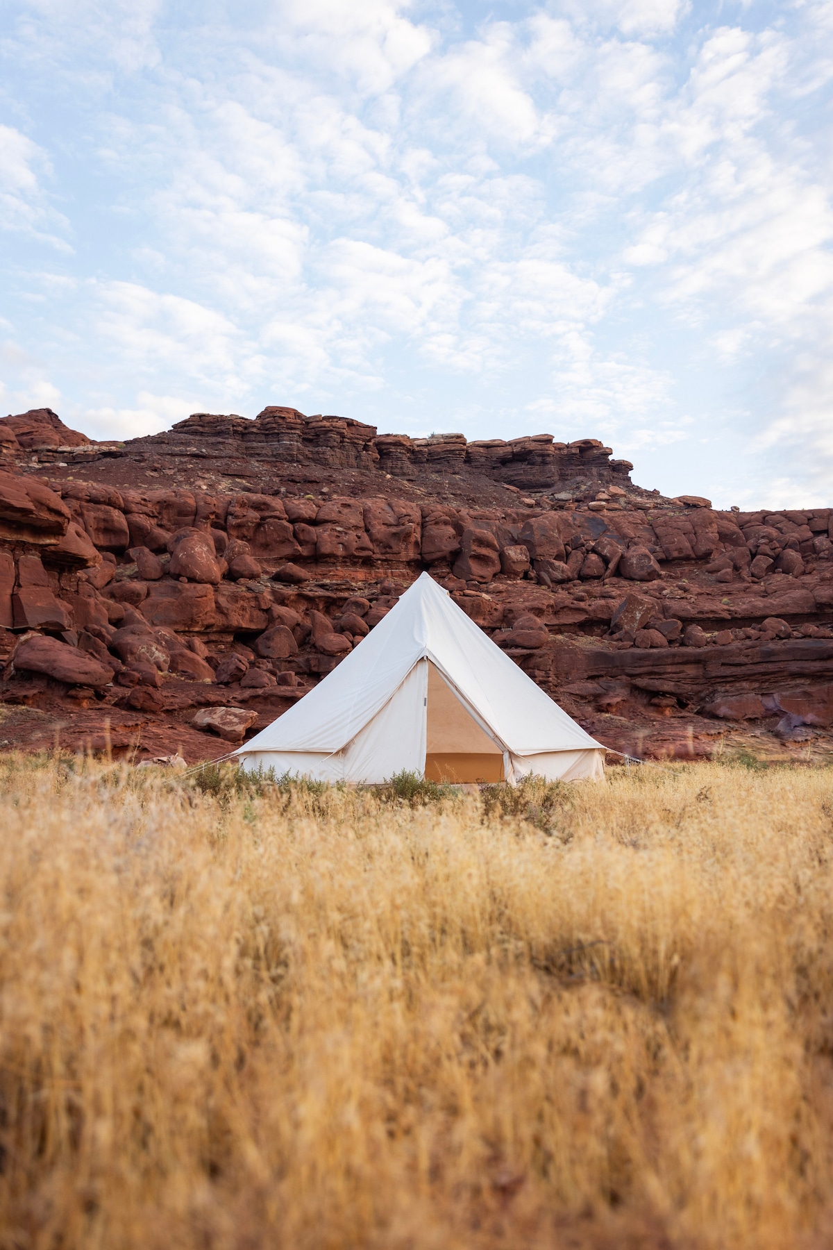 The Glamping tents provide an incredibly unique experience for the more adventurous travelers. You’ll have your very own intimate cozy tent that will feel like a home away from home. Your tent is equipped with a queen bed, twin bed, firepit and chairs, the tents do not have electricity. A centrally located bath house with 4 private units is used by all guests on the property. **THIS LOCATION IS 45 MINUTES FROM DOWNTOWN MOAB/ARCHES NP**