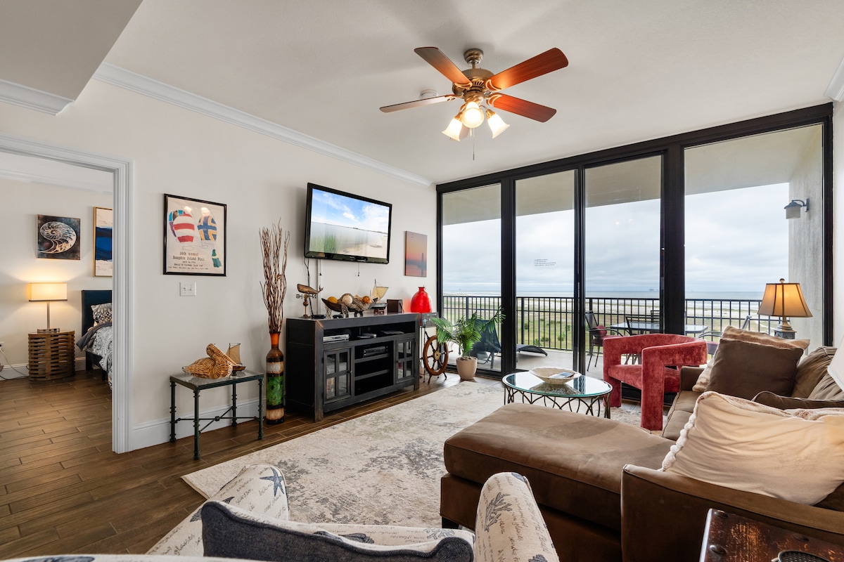 Doživite privlačnost zalivskih obala i prekrasan pogled na plažu sa privatnog balkona na 9. spratu. Puni sadržaji obezbeđuju nezaboravan boravak. Savršeno za porodice, radne/sportske događaje, romantične izlete ili solo avanture. Na američkoj plaži sa šećerom i peskom, nudi praktičnu blizinu državnog pristaništa, okupljališta i restorana uz plažu. Rezervišite odmah! *** Vojni popust dostupan za aktivne/penzionisane vojnike i veterane Royal Palms 902 je u privatnom vlasništvu