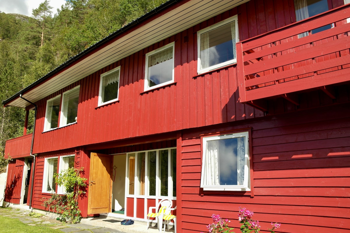 Mala kuća iz 50-ih sa pogledom na planine i velike vodopade. Kuća je udaljena 200 metara od mora, u mirnom selu Eidsland. Do Bergena je potrebno 90 minuta vožnje. Do Vosa vam treba 1 sat vožnje. Mjesto nudi sjajnu prirodu i lijepe pješačke staze u šumama i planinama. Pored mora možete da pecate ili plivate. Dozvole za ribolov se moraju kupiti prilikom ribolova u rijekama ili vodi. Na raspolaganju vam je kajak. Iznajmljivanje broda u okolini. Posteljina i peškiri su uključeni. Wi-Fi i Chromecast. Ne TV kanali.