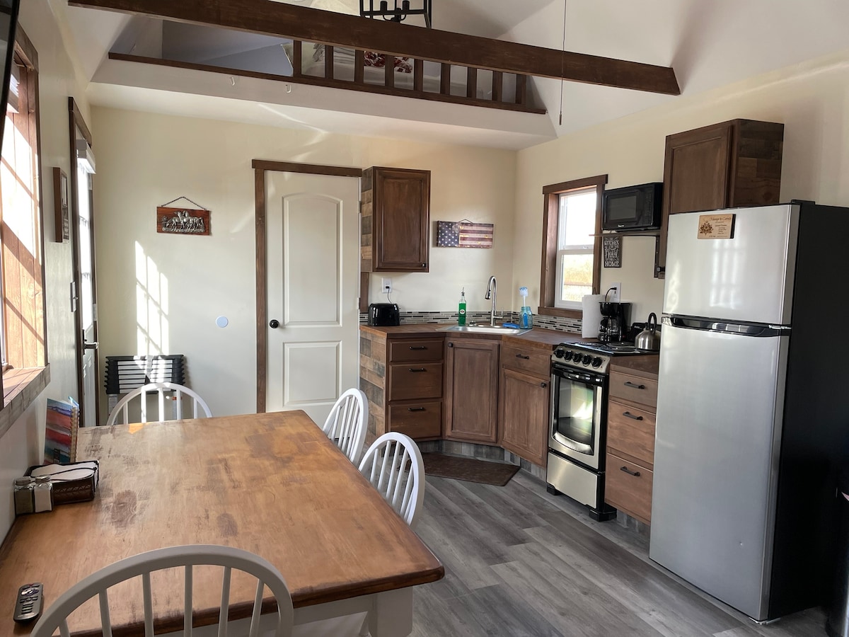 Pobjegnite u našu udobnu minijaturnu kuću, smještenu u srcu naše skromne porodične farme. Ovo je savršeno mirno utočište u jednostavnosti okružene prirodom. Dođite i doživite ljepotu života u pustinji, sa svim udobnostima koje su vam potrebne da biste se opustili. Povežite se s našim poljoprivrednicima, družite se s našim domaćim životinjama ili uživajte u privatnosti koju pruža naša mirna farma.