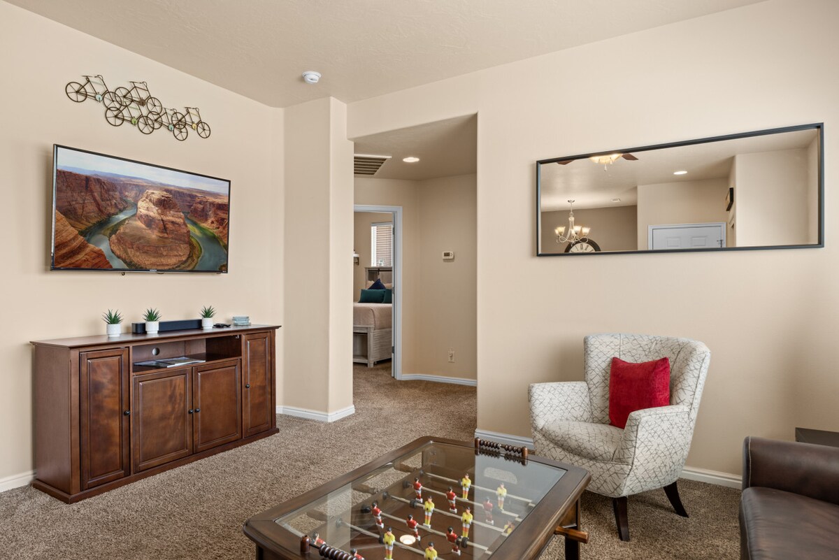 Pobjegnite u naše potpuno renovirano prostrano utočište, savršeno za šest osoba! Opustite se i podmladite pored bujnog bazena nakon jutarnje vožnje biciklom biciklističkom stazom Virgin River, uživanja u pustinjskoj UTV avanturi ili igranja runde vrhunskog golfa. Prozračna kuhinja poziva na vaše kulinarske kreacije ili uživanje u lokalnim jelima. Opustite se uz piće na balkonu, a nakon zalaska sunca uživajte u mirnom snu na svježim pamučnim čaršafima. Naše utočište vas čeka - vaš idealan dom daleko od doma.