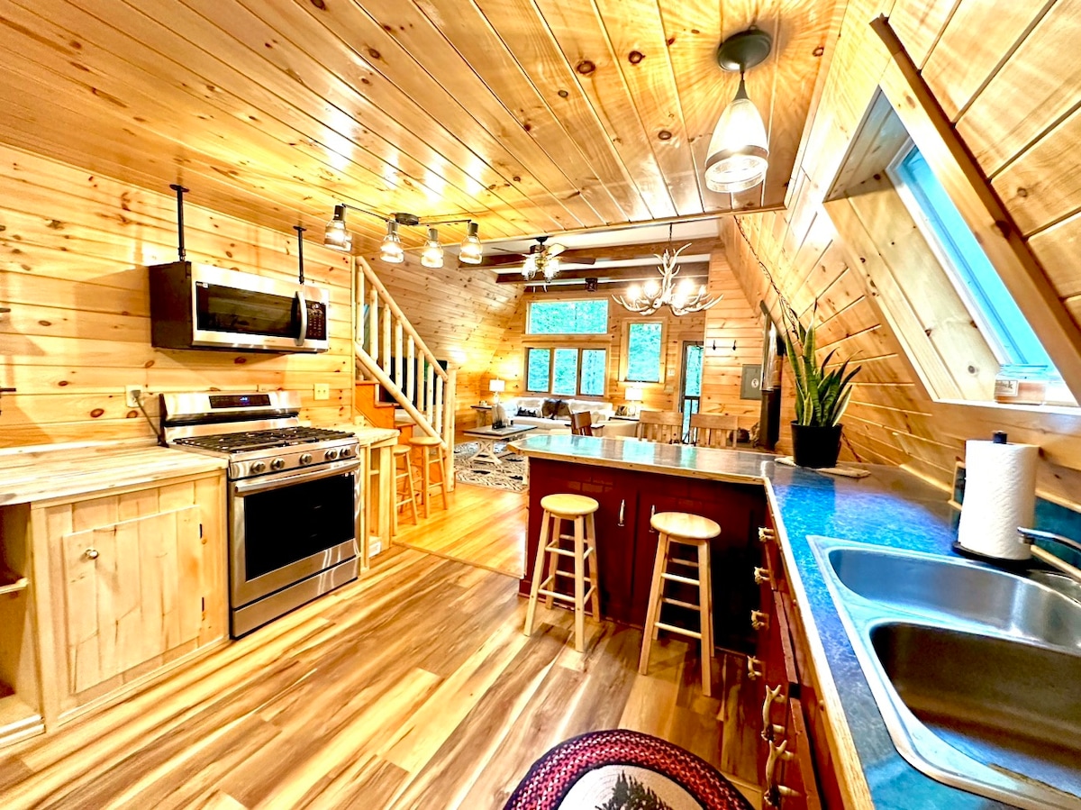 Dobro došli u predivne Katskil planine! Naša prelijepa planinska kuća u obliku slova A nalazi se na 6 hektara privatnog šumskog zemljišta s prekrasnim pogledom na prirodu. Dođite da boravite na svježem vazduhu! Planinska kuća je potpuno opremljena za uživanje u svim godišnjim dobima! Opustite se u HIDROMASAŽNOJ KADI na natkrivenoj terasi ili se izležavajte na spoljašnjem kauču dok gledate NETFLIX/YOUTUBE TV tokom cijele godine na našem SPOLJAŠNJEM TELEVIZORU, uživajte u potpuno novoj SAUNI (mart 2026.), igrajte BILJAR u našem potkrovlju ili prošetajte našom privatnom STAZOM!!