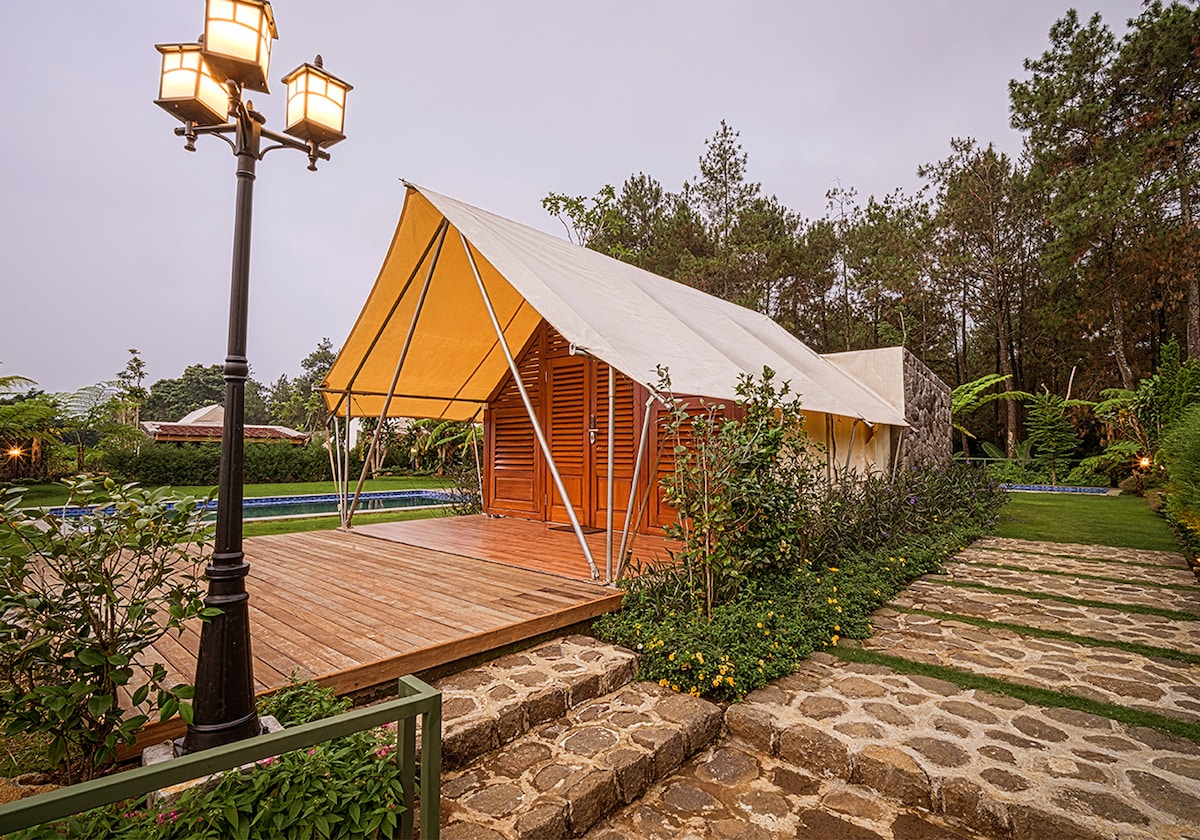 The Pine Hideaway glamping tent lets you experience the best of both worlds: nature's serenity and the comfort of a hotel suite. This private retreat features a refreshing pool, a spacious bathroom, and your choice of a mountain view or a pine forest view. Features and amenities in Pine Hideaway include: - 1 Queen Size Bed - 1 Sofa Bed - 1 Bathroom (shower) - Bathroom toiletries - Air Conditioning - Private Patio - Private Pool - Free Breakfast (2 pax)