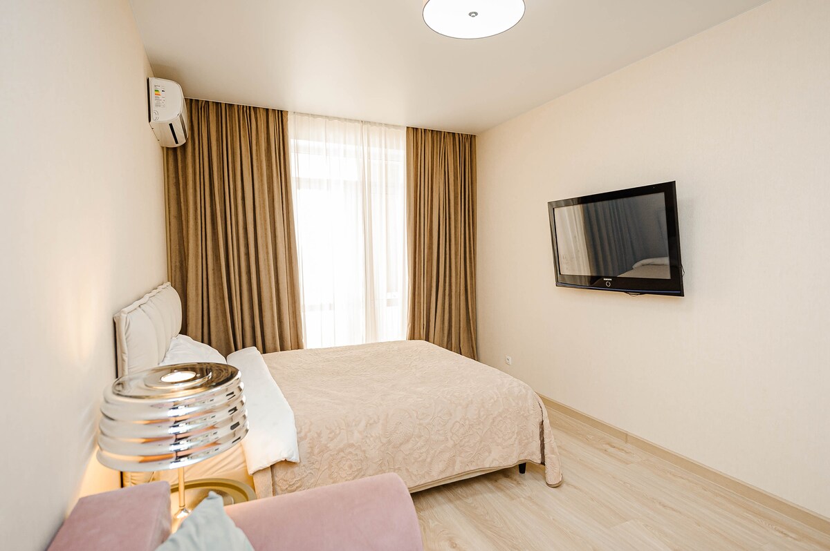 A spacious and very stylish apartment ideal for those who want to enjoy the tranquility of the city far from the noise and bustle, but located at the same time in an area that has everything necessary for a comfortable stay: supermarkets, restaurants, shops, entertainment and others. The apartment is absolutely new, equipped with everything necessary for a comfortable stay. It's design was worked together with a designer, which makes it special and homelike.