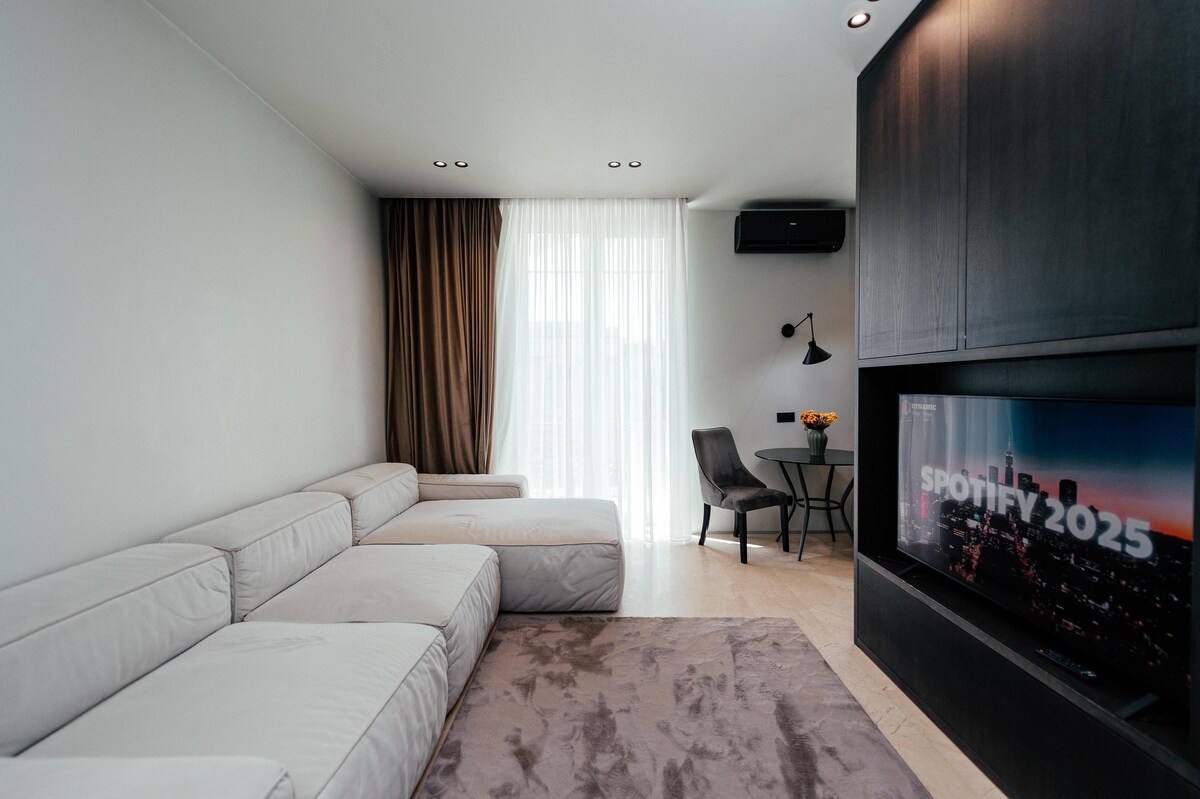 Luksuzni studio apartman u srcu Kišinjeva! Uživajte u veličanstvenom pogledu na najveći park Dendrarium iz ove vrhunske rezidencije. Stan ima prostranu spavaću sobu sa integrisanim kupatilom i ogromnim ogledalima. Projektor je dostupan za filmske večeri, a odvojeni dnevni boravak osigurava udobnost. Udobna spavaća soba se može pohvaliti udobnom sofom, a funkcionalna kuhinja ima i frižider za vino. Besplatan Wi-Fi i parking upotpunjuju ovaj savršen smještaj!