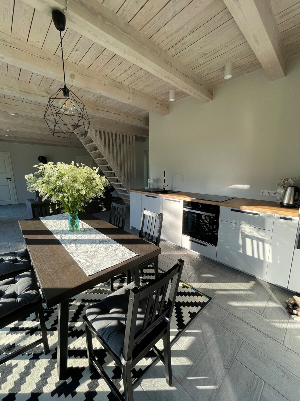 Izuzetno romantično, POTPUNO PRIVATNO, bez suseda, studio, kuća za odmor sa pogledom na reku, šumu i livade. River House se nalazi na eko farmi sa starim litvanskim konjima i Angus kravama. Nema komšija u blizini. Reka je sa pešačkim mostom. Tu je potpuno opremljena kuhinja, Wi-Fi, projektor sa ekranom, klima-uređaj za vazduh i šporet na drva 🔥 Kuća u Riveru ima svoju privatnu hidromasažnu kadu, vreme za pripremu 6 sati, cena 80 eur.