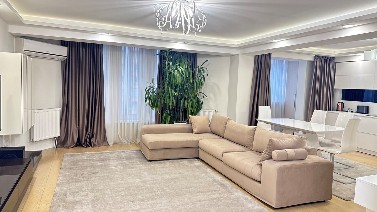 Uživajte u opuštajućem boravku u srcu Kišinjeva, u modernom i gostoljubivom stanu. Njegova centralna lokacija nudi brz pristup udobnim kafićima, restoranima, parkovima i gradskim atrakcijama. Želimo vam dobrodošlicu sa: • Besprekorna čistoća • Sveža posteljina i besprekorni peškiri • Osnovne potrepštine za kupatilo (gel, šampon, četkice za zube) • Wi-Fi velike brzine (500 MB/s) • Smart TV sa Netflix-om • Samostalna prijava Stan ima dvije spavaće sobe i dnevni boravak, a može da primi do šest gostiju.