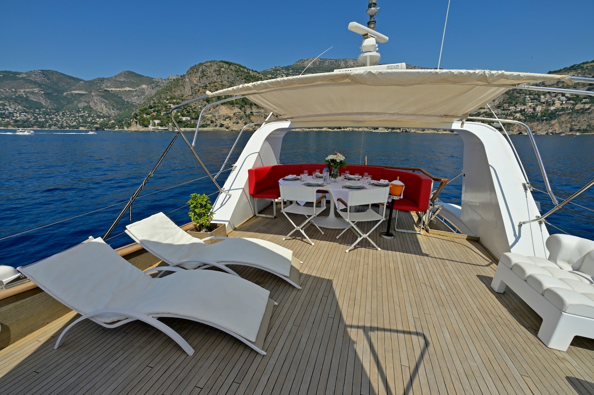 Vivez une expérience unique à Monaco à bord d’un yacht spacieux et tout confort, amarré au port hercule. Vue panoramique sur Monaco avec ses lumières magiques la nuit. Idéal entre amis, en famille ou en couple. 3 cabines, 2 salles de bain, salon lumineux et 2 terrasses. Service hôtelier inclus : ménage professionnel, draps et serviettes. Emplacement central, tout se fait à pied sans voiture.